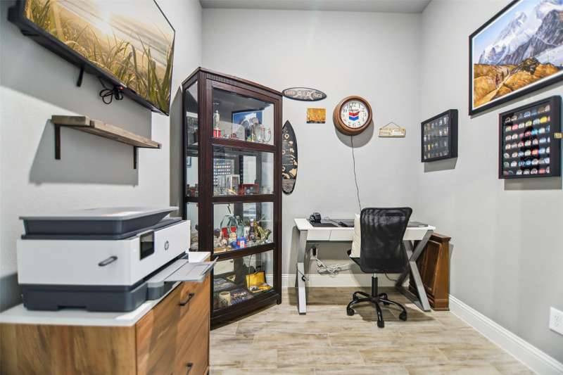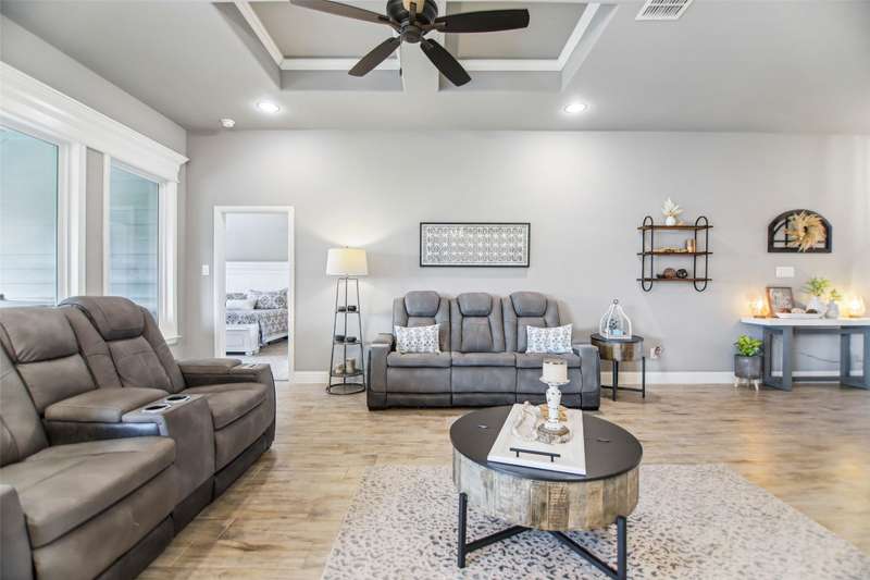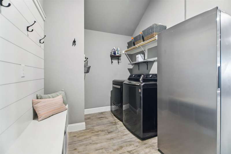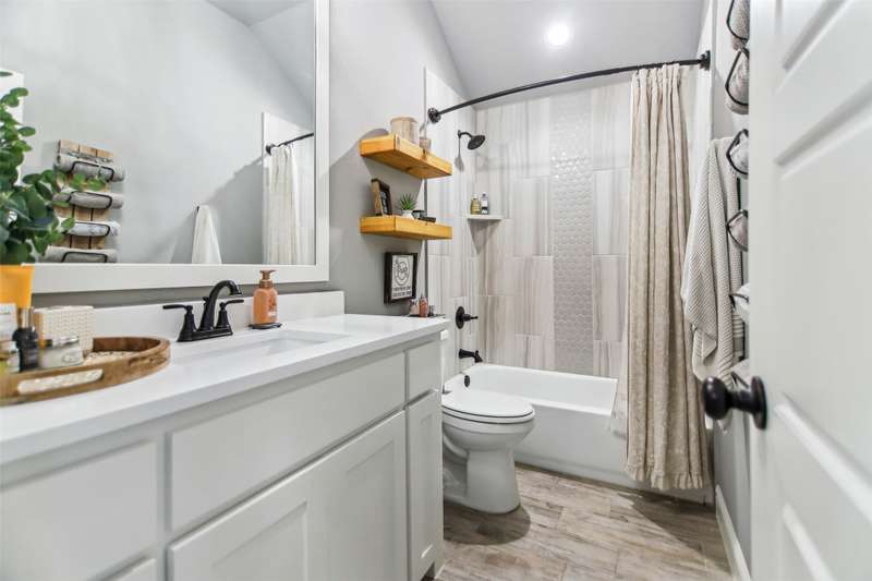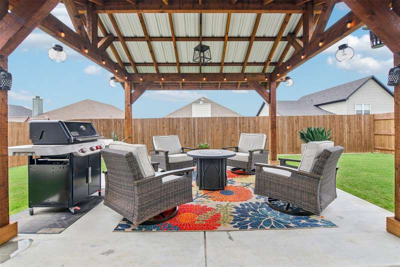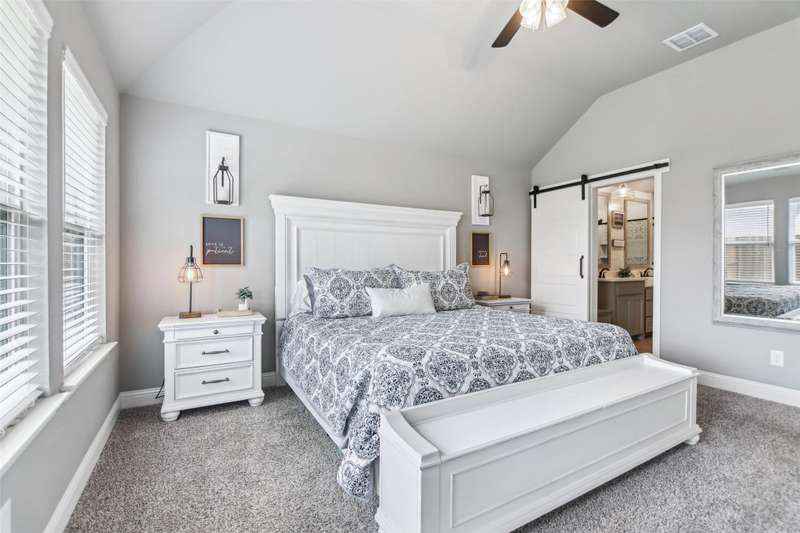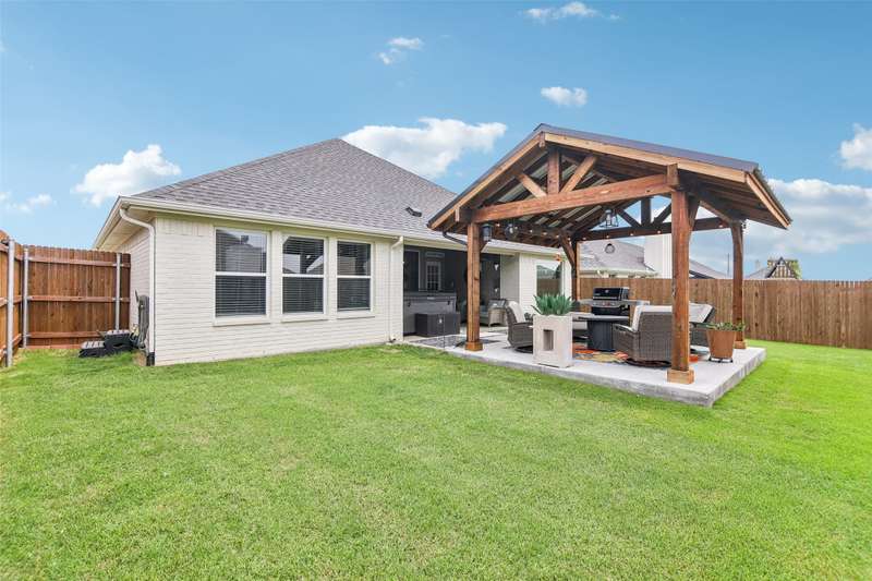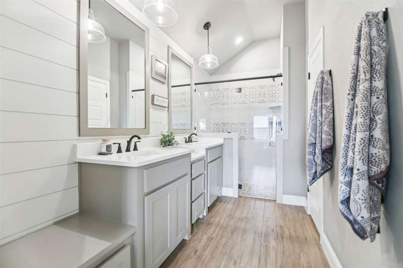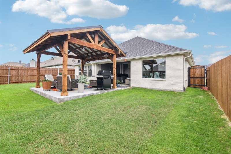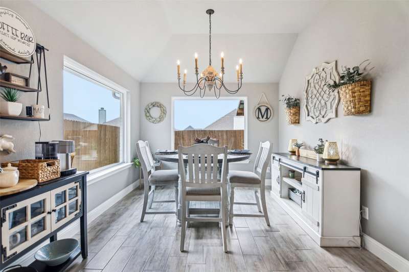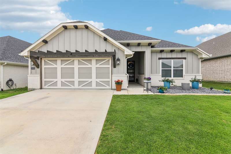 Welcome to this beautifully crafted farmhouse-style home by Double Rock Homes, where modern elegance meets timeless charm. From the moment you arrive, you'll be captivated by the thoughtful details and inviting design that make this home truly special.Step inside to discover warm wood-look tile flooring that flows seamlessly throughout the main living areas, offering the perfect blend of durability and rustic style. A spacious and private home office sits just off the main entry, featuring a barn door that adds both character and function.The heart of the home is the open-concept living, dining, and kitchen areaperfect for entertaining or enjoying quiet family time. The kitchen shines with sleek quartz countertops, abundant cabinetry, and modern fixtures. Exceptional lighting throughout the home creates a bright and welcoming ambiance in every room.The primary suite is a true retreat, complete with a spa-inspired ensuite bath featuring dual sinks, a walk-in shower, and ample closet space. Secondary bedrooms are well-sized and thoughtfully designed to suit a variety of needs.You'll appreciate the convenience of a spacious utility room that includes a built-in mud bench and designated space for a freezerideal for keeping your home organized and efficient.Step outside and enjoy not one, but two covered patios! The main patio provides a great space for relaxing or entertaining, while the additional covered patiocomplete with lightingis perfect for evening gatherings or creating your dream outdoor living area.Every detail in this home reflects Double Rock Homes commitment to quality craftsmanship and stylish design. Whether youre hosting guests, working from home, or enjoying a quiet evening on the patio, this farmhouse-style gem offers comfort, function, and beauty in every square foot.