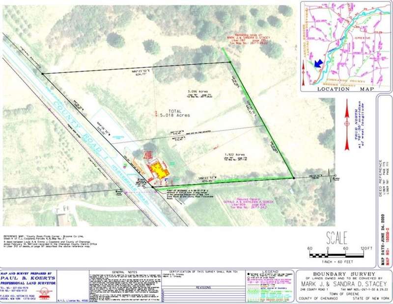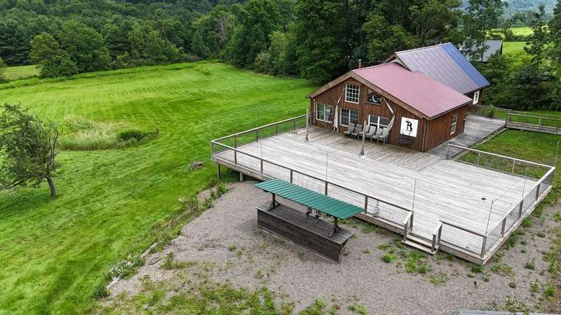 This property can easily be turned into the cozy home of your dreams. Open concept living with high ceilings and never ending views. Poured concrete walk out basement and a 40 X 60 deck to enjoy the beauty of Chenango County while utilizing an outdoor bar. This generous 5 acre lot can be used for additional buildings and parking. This is also zoned as commercial.