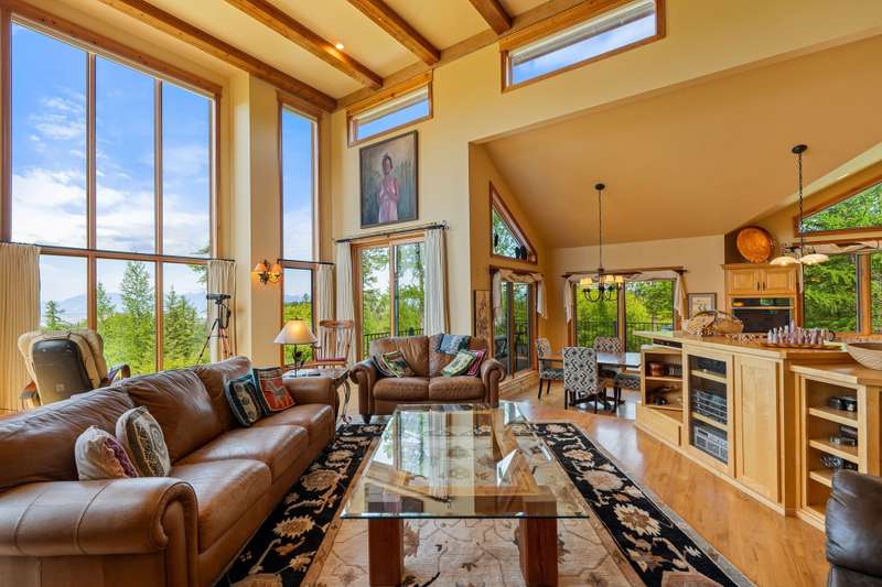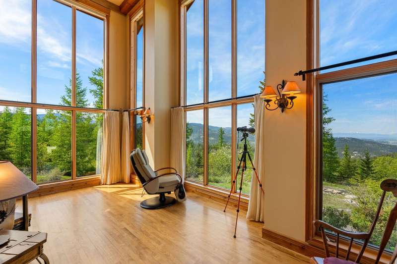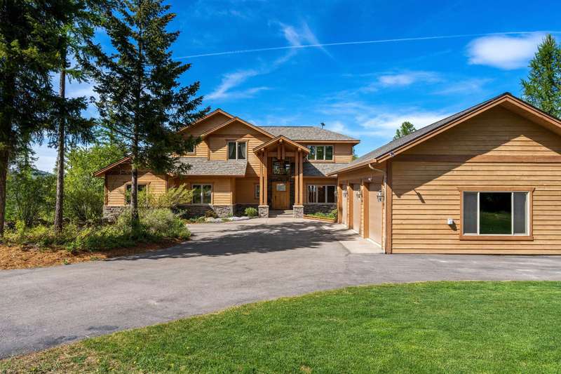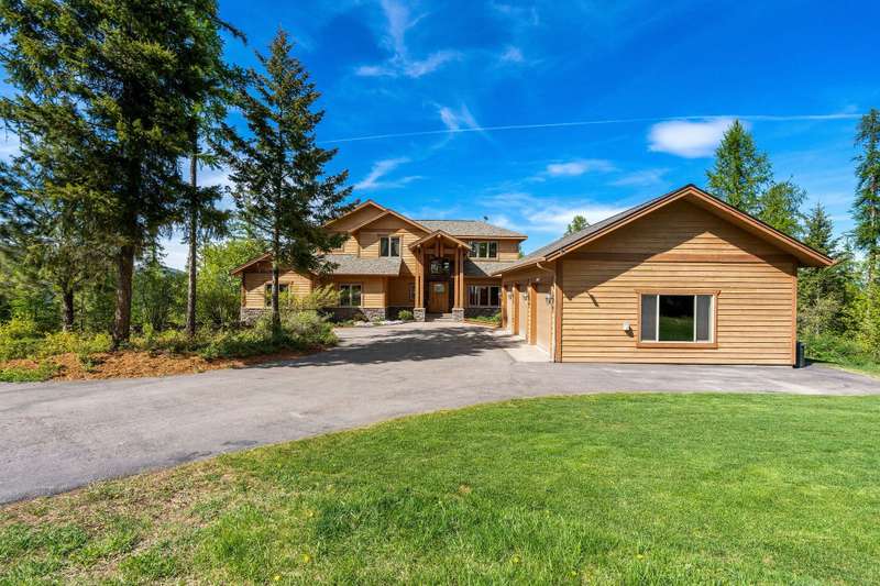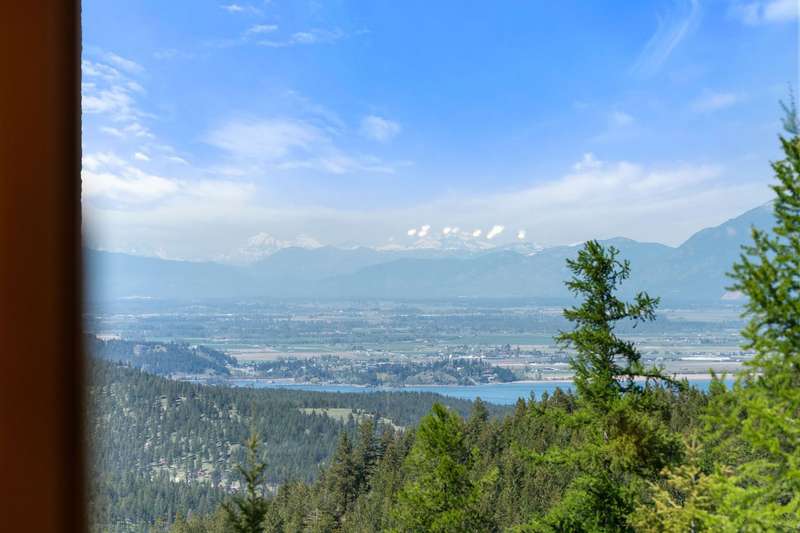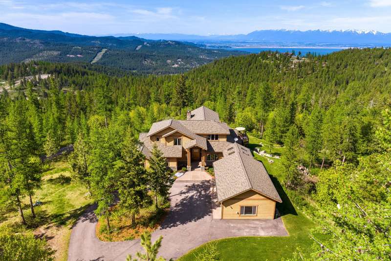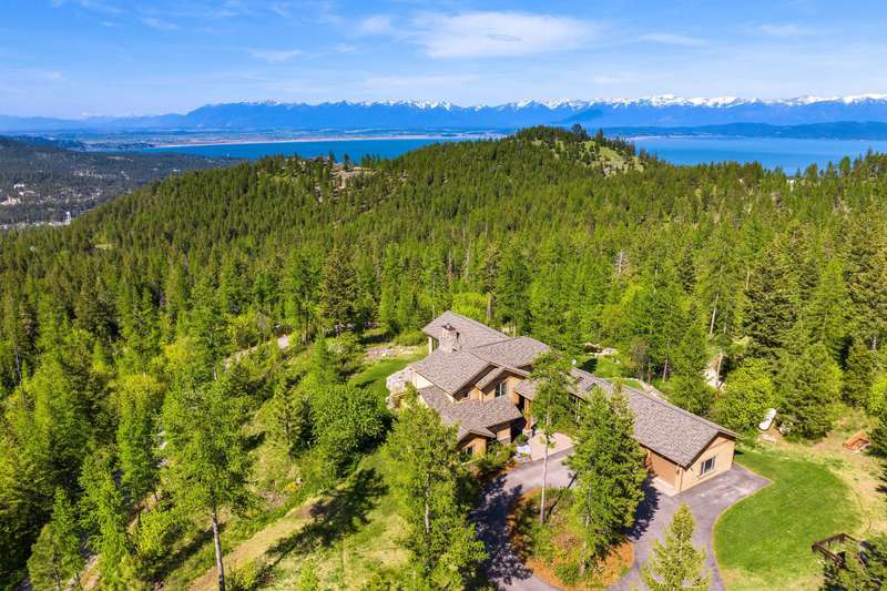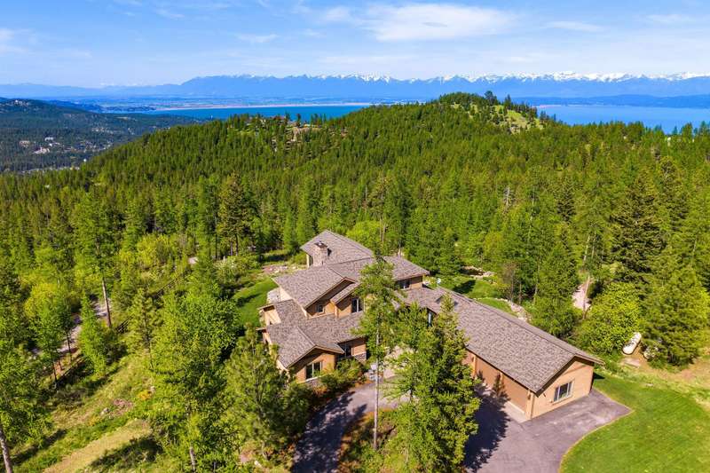 Stunning top-of-the-mountain privacy and panoramas in nearly every direction including spectacular views to the north across the Flathead Valley to Glacier National Park. State of the art home with radiant floor heat, bathrooms have all been updated, new flooring in the walkout basement, and brand new roof in May 2025. Great room with oversized windows to maximize the views. Sit on the deck and enjoy the sound of the waterfall into the pond. Wildlife abounds in this private 20 acre setting, new perimeter road has been cut in for walking or four-wheeling.