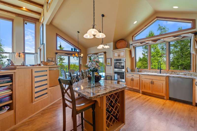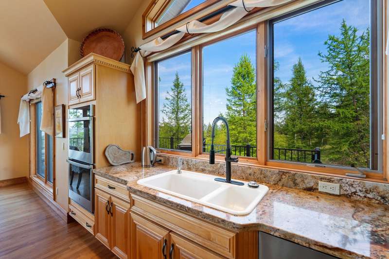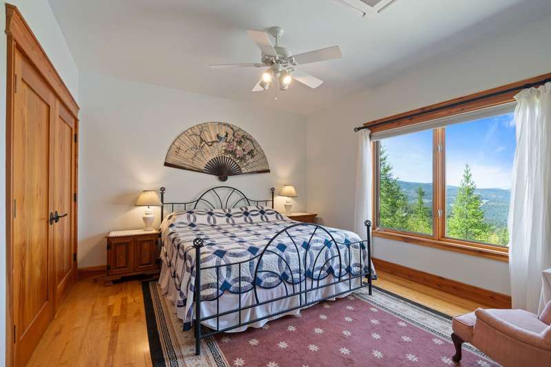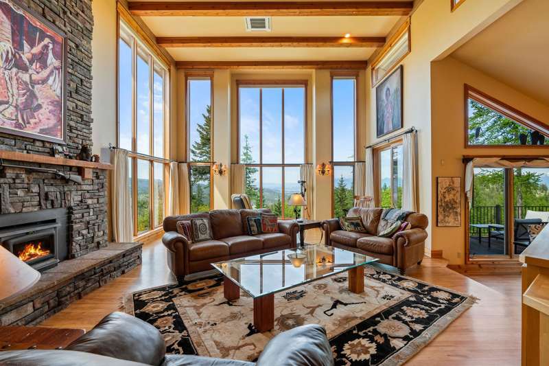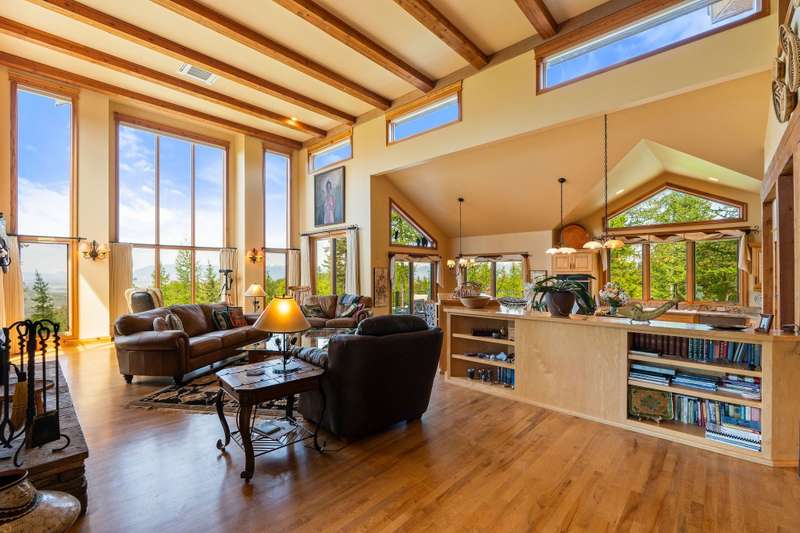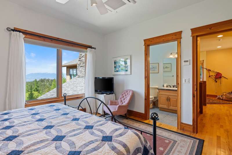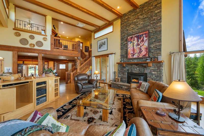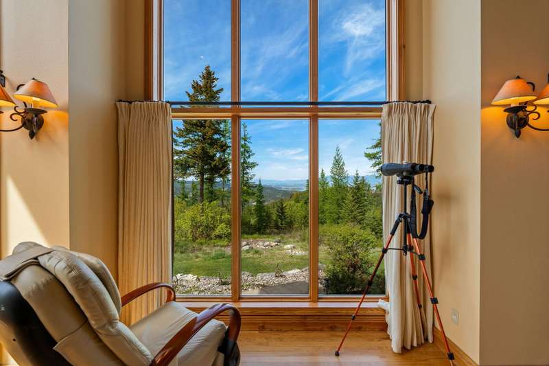 Stunning top-of-the-mountain privacy and panoramas in nearly every direction including spectacular views to the north across the Flathead Valley to Glacier National Park. State of the art home with radiant floor heat, bathrooms have all been updated, new flooring in the walkout basement, and brand new roof in May 2025. Great room with oversized windows to maximize the views. Sit on the deck and enjoy the sound of the waterfall into the pond. Wildlife abounds in this private 20 acre setting, new perimeter road has been cut in for walking or four-wheeling.