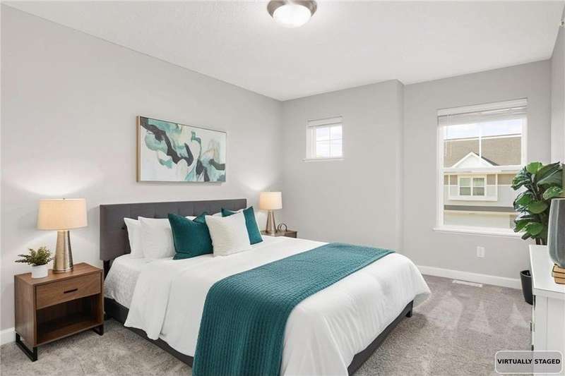 Welcome home to this like-new 3-bed, 3-bath townhome in Skye Meadows! An open-concept main floor with stylish finishes creates a warm, inviting space for everyday living and entertaining. Upstairs the inviting loft adds flexible living space, while the upstairs laundry adds extra convenience. The expansive primary suite offers a walk-in closet and ensuite full bath, plus an additional sitting area to unwind from the day. Located near parks and miles of trails while being within an easy commute to the Twin Cities, this home is perfect for modern living. Enjoy low-maintenance living in a fantastic location—schedule your tour today!