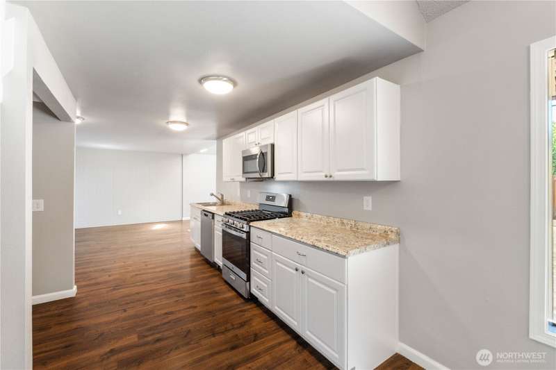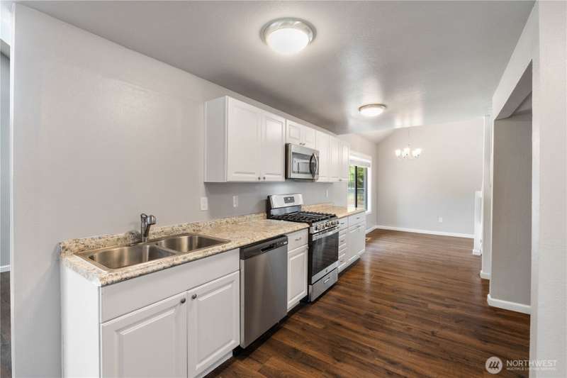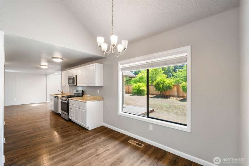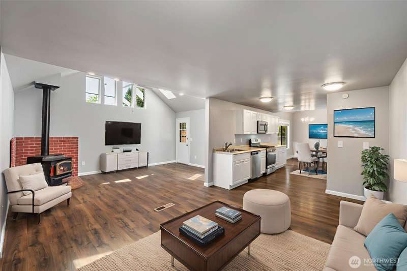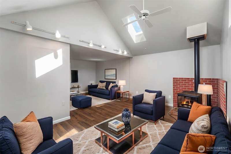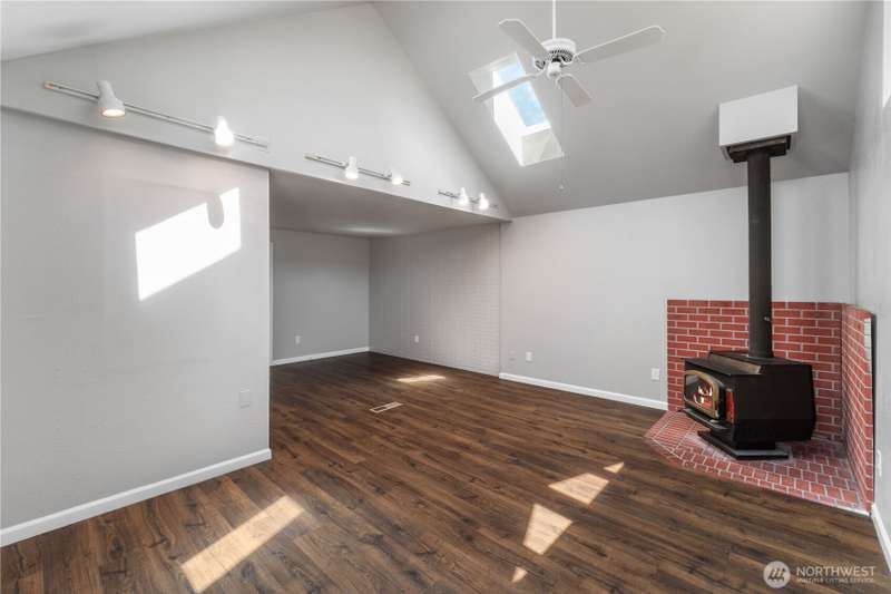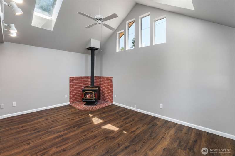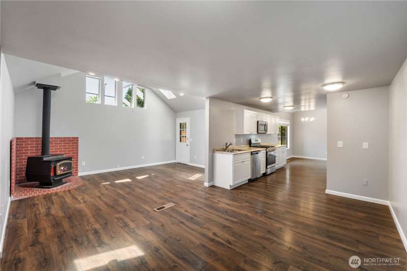 Beautifully updated home! Fresh interior paint, engineered hardwood flooring throughout the entire home. Primary bedroom with walk in closet, and 2nd bedroom on the main floor with full bathroom. Upstairs has two more bedrooms with a full bathroom. This home has a living room and family room for entertaining. A/C. Cathedral ceilings in the family room with a cozy wood burning stove. Kitchen has newer cabinets and new stainless steel appliances with gas stove. Washer and dryer are newer. Roof, furnace, and hot water tank are six years old. Brand new septic system just installed. New front yard and back yard has been planted. Great size yard and almost entirely fenced. Two car garage with plenty of parking in the driveway. Good location.