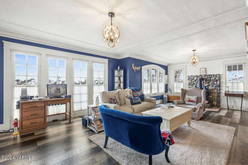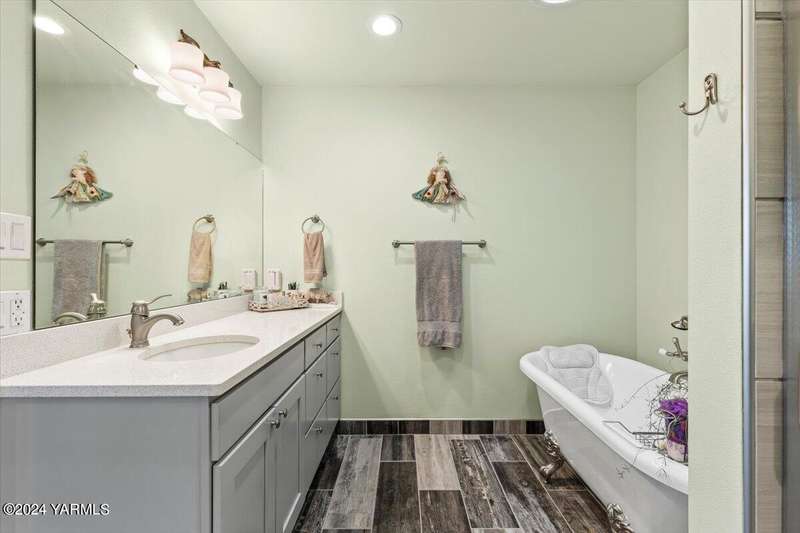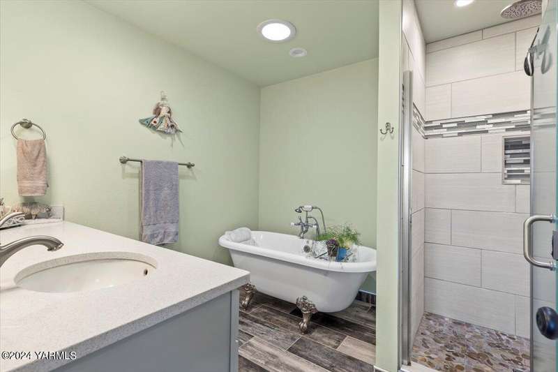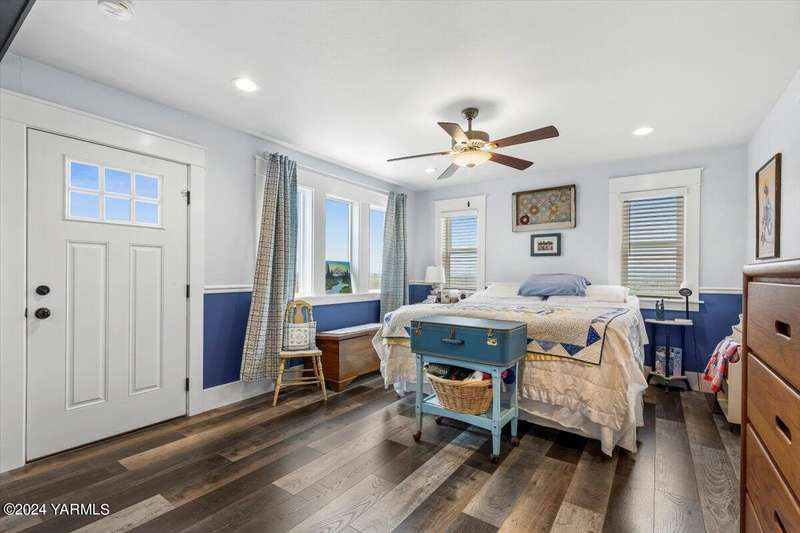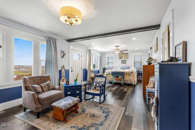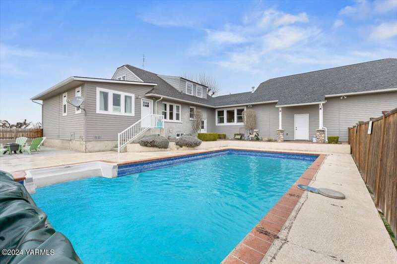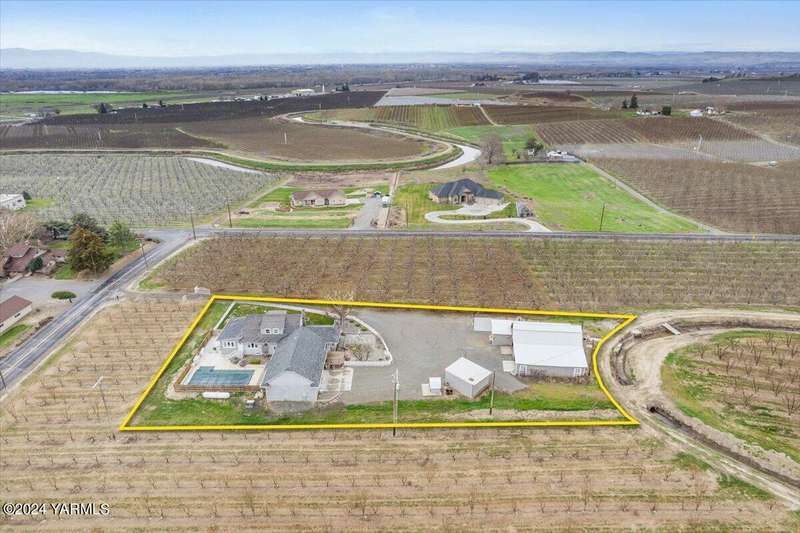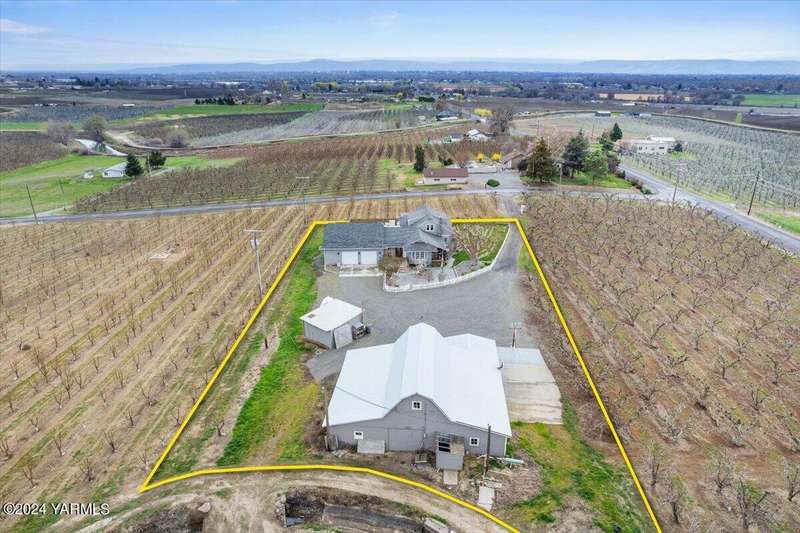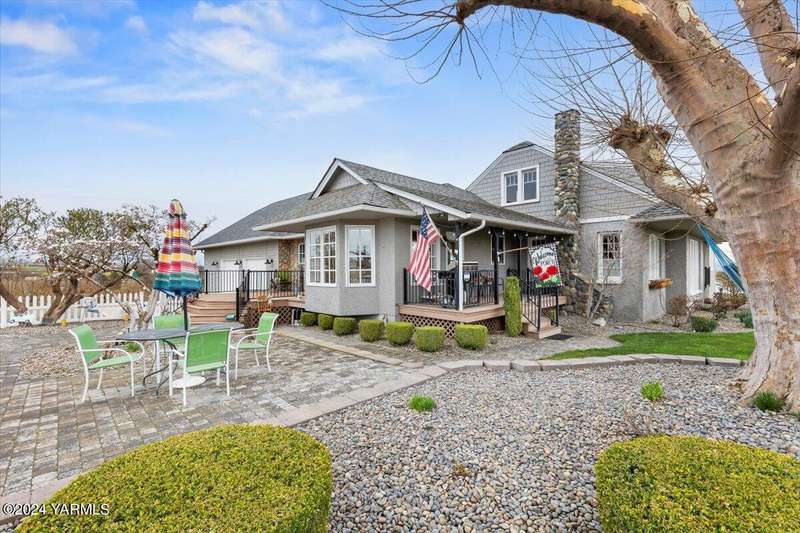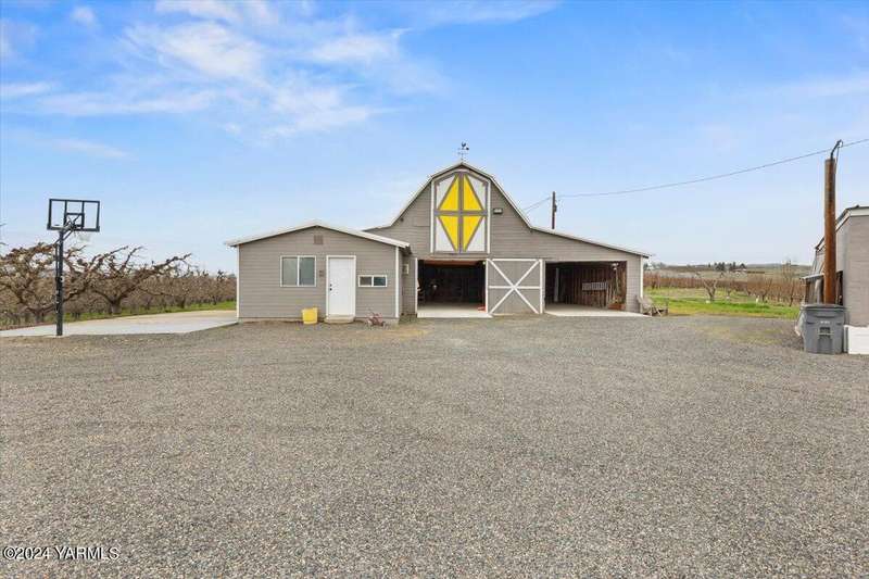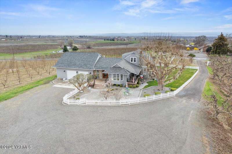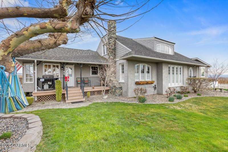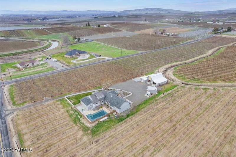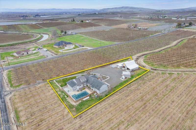 Just 18 minutes from the Union Gap traffic circle. This Luxury farmhouse in the heart of wine country is ready for it's next chapter. No expense has been spared with the extensive updates throughout including a new Trane Oxbox heat pump in 2023, luxury viny plank flooring, including new luxury plank extended to the downstairs in October 2024. A primary bedroom, bathroom and patio addition, new pool liner in 2020, rain gutters in 2017, all electrical and plumbing and roof over the additions. (See documents for full list of updates). This 4 bedroom, 4 bath, 4006 sf beauty has everything you will need with just under 1 acre of low maintenance land with underground sprinklers and drip lines all over. Enjoy the warmer months outside taking in the views of the lower valley or lounging in the fenced in private pool area located just off of the primary bedroom; which is a spacious main-level suite with custom closet and built-ins as well as an updated bathroom with heated floors, claw-foot tub and walk in pebble floor shower. The rest of the main level features a spacious living room with picturesque windows, a wood stove, and office. Down the hall is another tastefully updated bathroom and the kitchen with custom soft close cabinets, granite countertops and newer appliances. Upstairs you'll find 3 more bedrooms with large closets and a renovated bathroom with views from every window. The lower level features a huge laundry room with all of the storage you could need, an additional full bathroom and rec room. Outside you'll find no shortage of parking for family and friends as they enter through the gated entrance leading to the massive barn that has recently received new exterior paint and concrete floors. Off of the barn is finished getaway flex space for gym/office/rec room/studio rental etc. In addition the propane tank was topped off and the 100+ year old sycamore tree has bee freshly trimmed. New automatic security lights installed in the back for peace of mind.