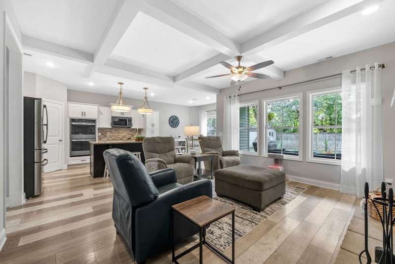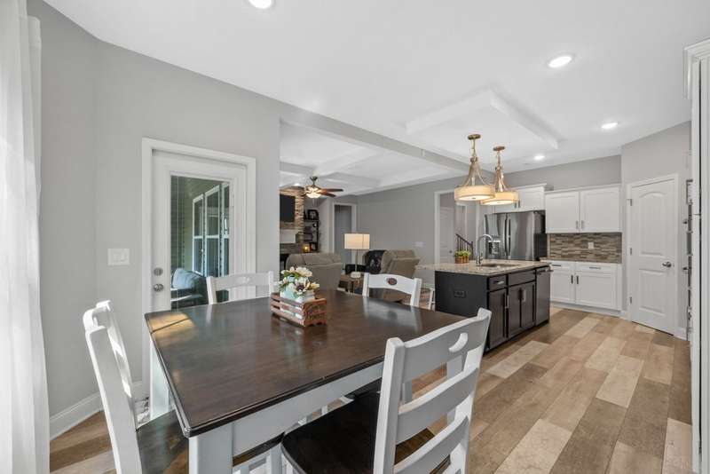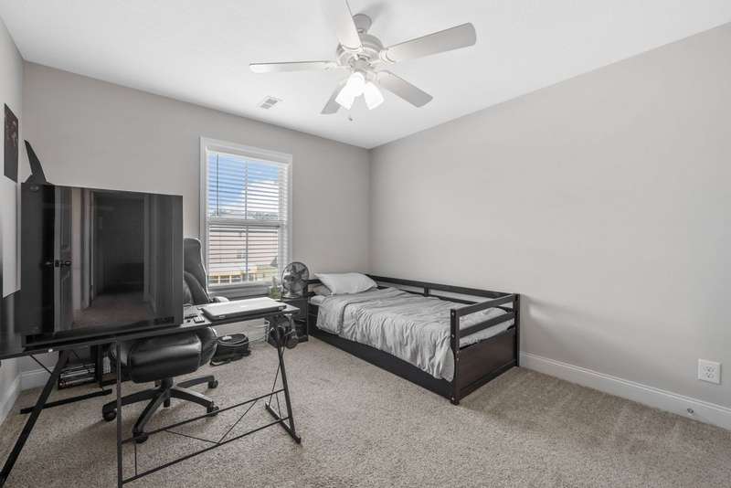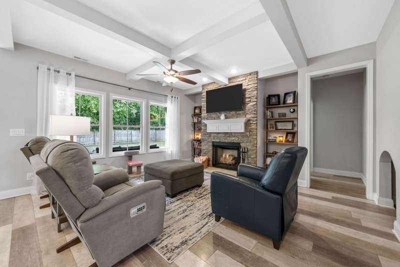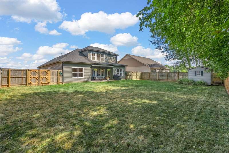 Convenience & comfort in the sought-after Kirkwood school district! This exceptionally maintained 4-bedroom, 3-bath home offers incredible value with features & upgrades you'd expect at a much higher price point. Located just minutes from I-24, shopping, dining, & the Clarksville Athletic Club, it's an easy choice for discerning buyers. From the welcoming front porch to the tree-lined backyard with no rear neighbors, this move-in ready home offers peace & privacy. Inside, the open floor plan creates a spacious yet comfortable feel, highlighted by a cozy stone fireplace, custom built-ins, & a stylish coffered ceiling. The large kitchen features granite counters, SS appliances (including a new refrigerator), a large island, & a casual dining nook - perfect for everyday meals or gatherings. The main level includes a relaxing primary suite with walk-in closet, dual vanities, & tiled shower, plus a second bedroom that works well as a guest room, office, or playroom. You'll also find a first-floor laundry room, oversized closets for plenty of storage, & even a custom pet nook tucked under the stairs. The second floor boasts two more bedrooms, a full bath, & a versatile bonus room. Outside, enjoy relaxing evenings on your covered patio with retractable sun-shade, overlooking the private, fenced yard. The level yard & lush green lawn make outdoor activities enjoyable. The covered front porch provides the perfect spot for morning coffee & sunrises. The true, 2-car garage with custom epoxy flooring offers durability & style. The outdoor storage shed & custom landscaping take this property to the next level! Nearly $25,000 in upgrades. Why wait for new construction when you can get more space & amenities for far less money? Schedule your own private showing today!