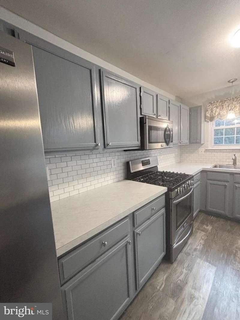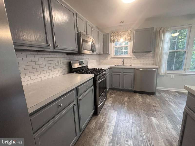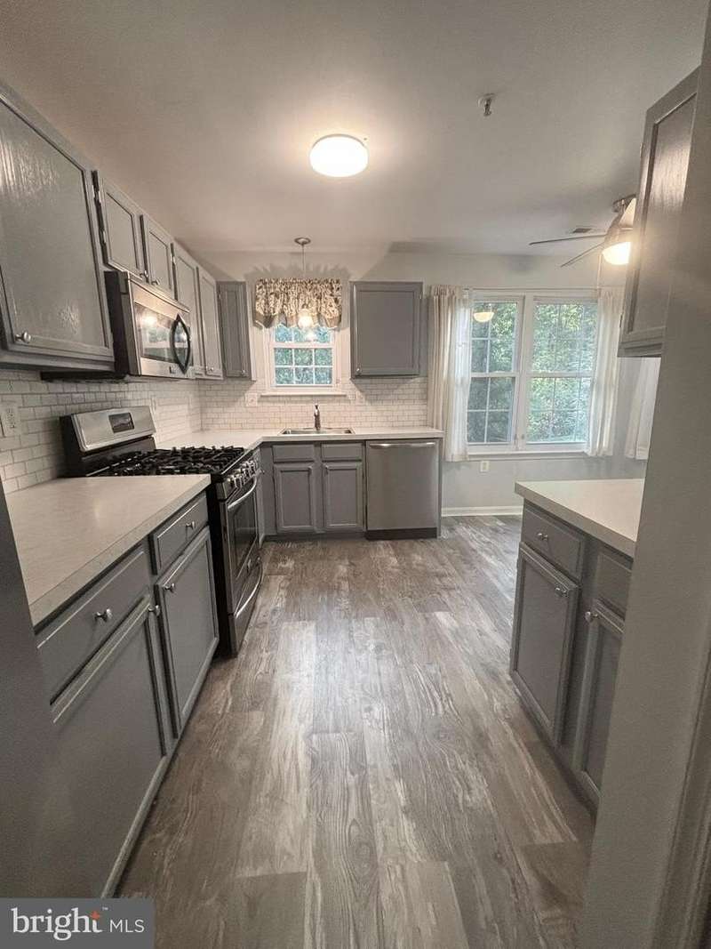 TRUE 3 bedroom first floor condo! Backs to woods for so much privacy! Enormous living/dining room with laminate flooring. Gorgeous fully renovated kitchen has tons of cabinetry, ceramic tile backsplash, newer stainless steel appliances to include gas range, eat-in nook surrounded by windows, laundry closet w/washer & dryer and ceiling fan. Both baths have been updated too! Primary bedroom with en suite to include full glass and tiled shower, double sinks, and ceramic tile flooring; walk in closet off bedroom. Two additional bedrooms share another renovated bathroom! This condo backs to woods for the best way to unwind from a long day or two start your day with the serene views! Well maintained condo building makes this one a top priority!