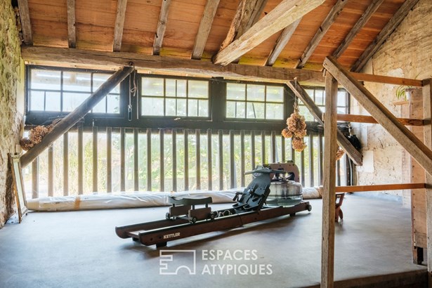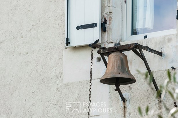 The exterior opens onto a flat and enclosed plot of 2,200 sqm, decorated with a functional well and a period bell, a vestige of the old school which once resonated to the rhythm of the students.