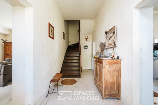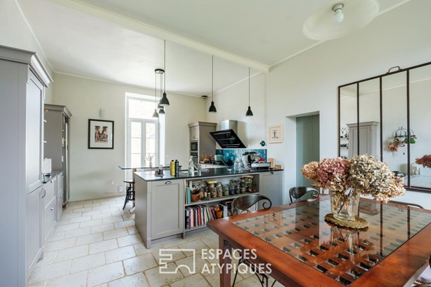 From the entrance, the unique character of the house is revealed through its vast living room bathed in light, where the character of the old blends harmoniously with contemporary elements.