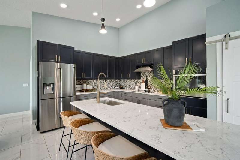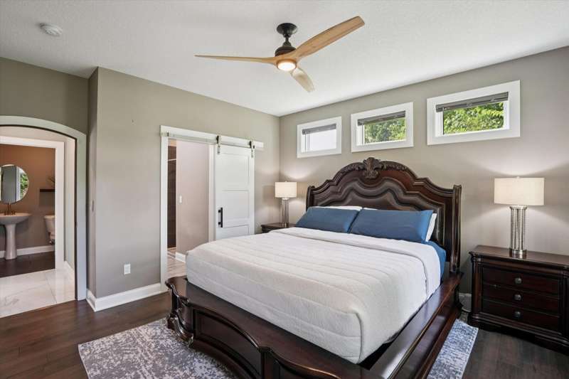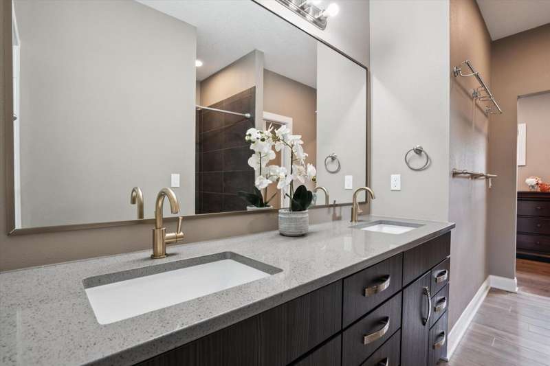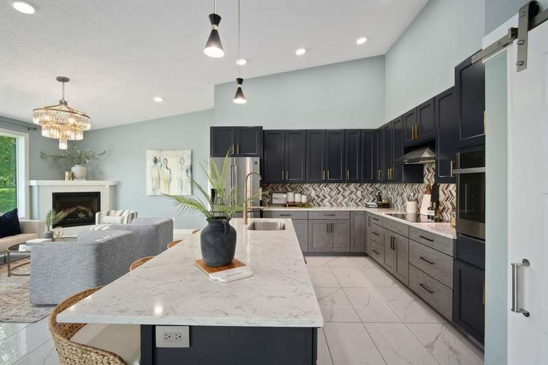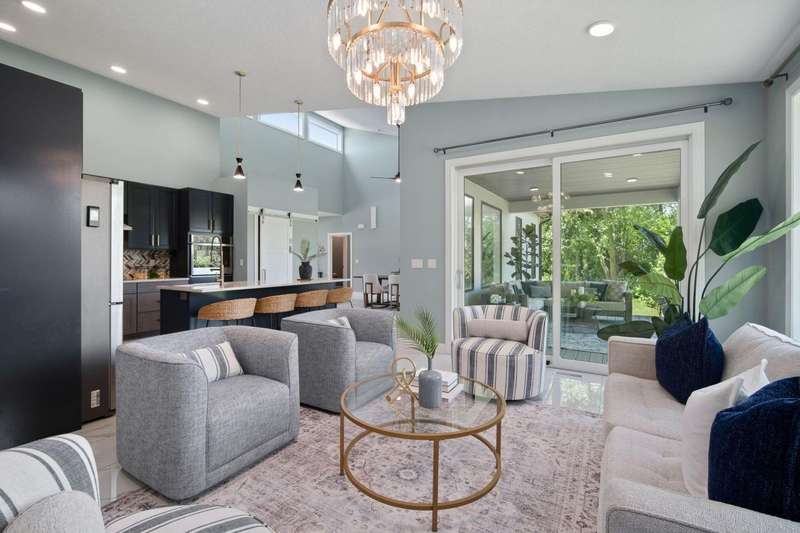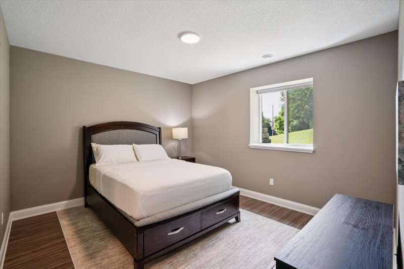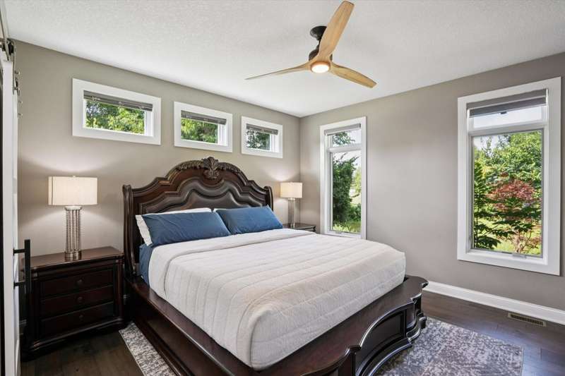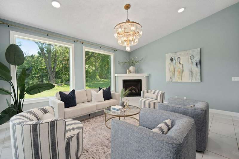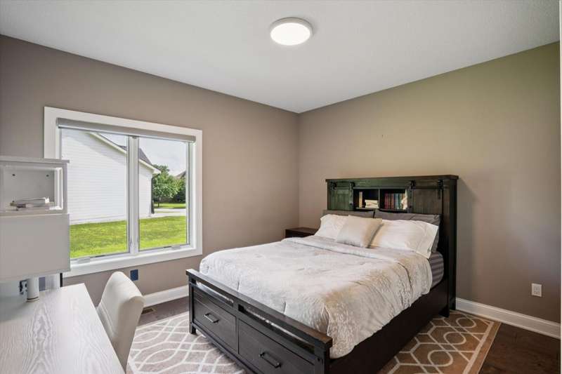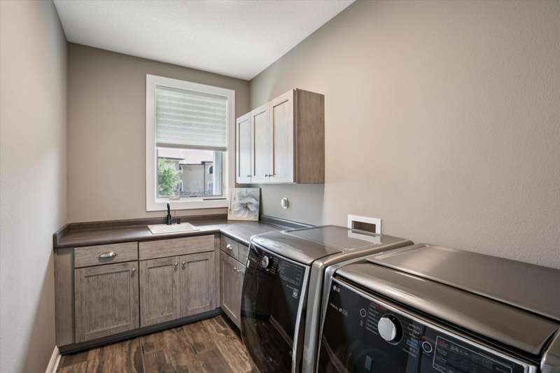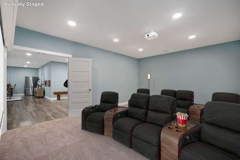 This beautiful custom built home is perfect for those looking for a contemporary style home with lots of natural light and an open floor plan. With 5 bedrooms, 4 baths, and over 3400 SF of finished living space, this home offers plenty of space for everyone and everything. The large windows bring the outdoors in while the tiled floors and neutral color palette keeps the look fresh and modern. The kitchen is a chef's dream with two toned cabinets, quartz countertops, top of the line appliances and a center island with bar stool seating. The living room includes a gas fireplace and offers easy access to the covered deck and green space beyond. Three bedrooms and three baths on the main floor include the primary bedroom suite with luxurious tiled shower and spacious walk in closet. The finished lower level offers plenty of space to entertain with a theater room, family room, two additional bedrooms and another bath. Other features include a spacious 3 car garage, water filtration system, and outdoor irrigation. Fantastic location with easy access to schools, bike trail, and Hwy 30.