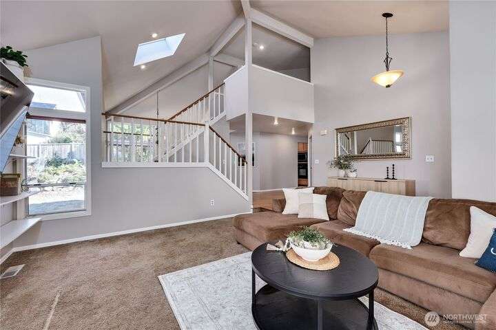 Welcome home to Silverdale’s desirable Ridgetop neighborhood! Spacious 4bdrm, 2.5bth residence offers light-filled living w/vaulted ceilings, skylights, expansive windows that capture lovely Olympic Mountain views. Inviting layout features both a formal dining room, a sunny eat-in kitchen, living room, & a family room w/gas fireplace. The primary suite is a true retreat with a 5-piece bath & walk-in closet. Freshly painted inside & out, with a roomy 3-car garage & fully fenced backyard ready for garden, pets or play! Just minutes to downtown Silverdale, Costco, shopping, dining, hospital, w/quick highway access—plus ideally located between Naval Base Kitsap and Bangor. CK schools: A wonderful lifestyle + a great value for the size of home!