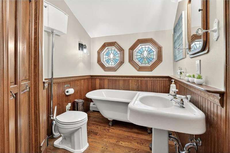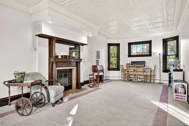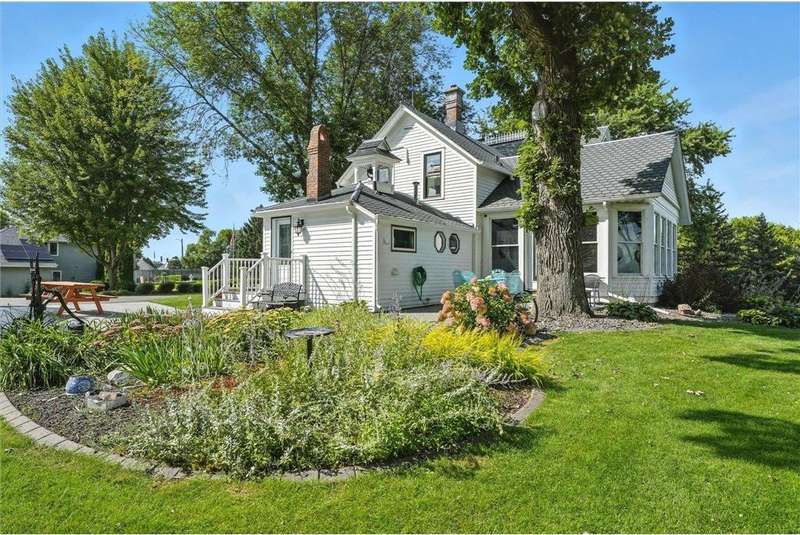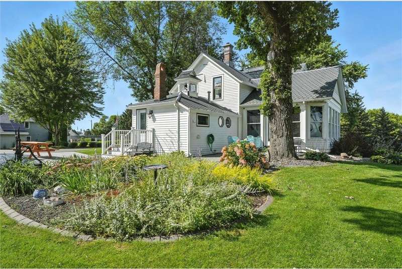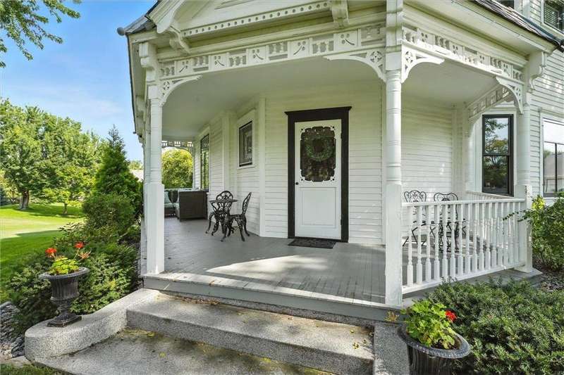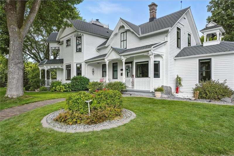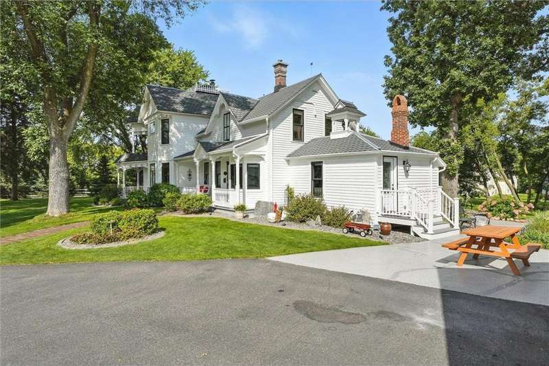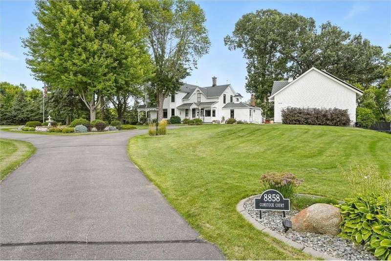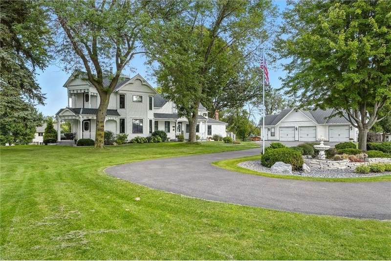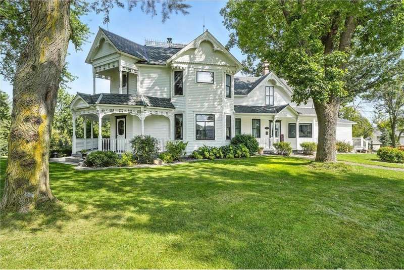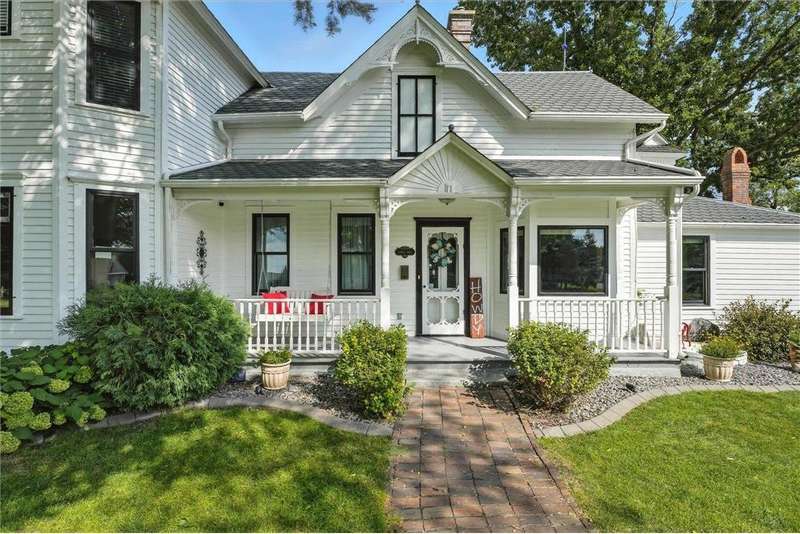 Truly one-of-a-kind! This historic 1884 Victorian farmhouse in Maple Grove sits on a gorgeous lot over one acre with mature trees and expansive yard space, rare for the area. The home seamlessly blends old-world charm with modern updates, including heating and AC, updated windows, and solar panels, while still featuring some of the original leaded glass windows. A newer family room addition boasts vaulted ceilings and huge windows overlooking the backyard, flooding the space with natural light. Multiple covered porches provide perfect spots to relax and enjoy summer days. Both the formal living and dining rooms are oversized, ideal for entertaining. This home offers a main-floor bedroom and three additional bedrooms upstairs, including one with a catwalk and its own spiral staircase. A third level provides versatile space for storage or a small craft room, complete with skylight. The historic old schoolhouse bell now sits atop one section of the home, adding a unique touch. An oversized three-car garage completes this extraordinary property. If you’re looking for a truly special and unique home, this Maple Grove gem is the perfect opportunity!