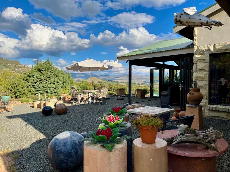If you're looking for security, uninterrupted views, and a serene setting—look no further. Eagles View Estate is an independent estate on top of the well known Clarens Golf Estate. This beautifully appointed two-bedroom home offers the potential to be easily converted into a four-bedroom residence, making it ideal for couples, small families, or those seeking additional rental income. Location: Perched on one of the highest stands in Eagles View Estate, this property enjoys panoramic vistas and unmatched privacy. Main House Highlights: • Spacious open-plan living area combining a modern kitchen, comfortable lounge, and dedicated work space • Enclosed patio with sweeping views, perfect for year-round entertaining • One generous bedroom with en suite bathroom • Tastefully decorated with custom furniture, commissioned lighting, and a handcrafted front door by renowned artisans Private Cottage: • Self-contained with kitchen, lounge, and bedroom • Ideal as a guest retreat or income-generating rental unit Additional Features: • Gas stove and geysers • Inverter system • Exceptional privacy and a truly unique character Property comes with most of the furniture, full list will be provided. This property offers more than a home—it offers a lifestyle. ? Contact us today for more information or to schedule a private viewing!