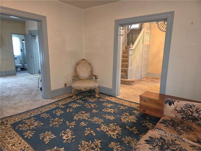 This large Victorian home with 3 nice sizes bedrooms has seen its share of love!!! There are additional 3rd floor rooms to make additional sleeping rooms, home office or a teen's private gaming retreat (just add auxiliary heat source); deco corner fireplace in living room, formal dining room; eat-in kitchen, den, full bath and mud room; breaker box, furnace replaced, high ceilings, 10" baseboards, crown moulding on 1st floor; whole house carpeting just professionally cleaned, basement is waterproofed with interior French drains; house was winterized through the Allegheny County program; H2O tank - 2023, furnace replaced; new roof on house and garage, new gutters on house - September 2025; fenced yard, carport; This beauty is just waiting for you to add your special touches and bring it back to it's glory days!!!