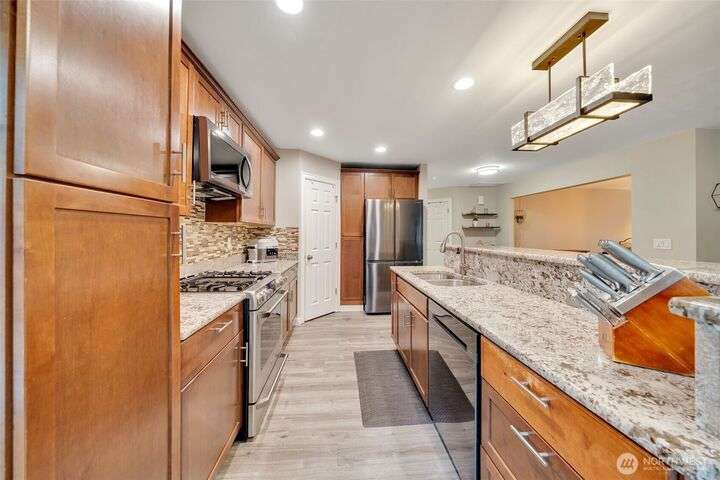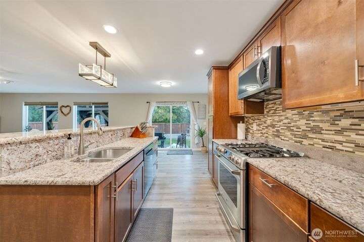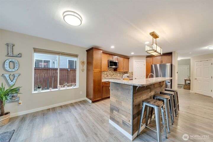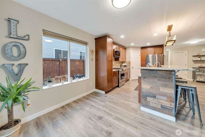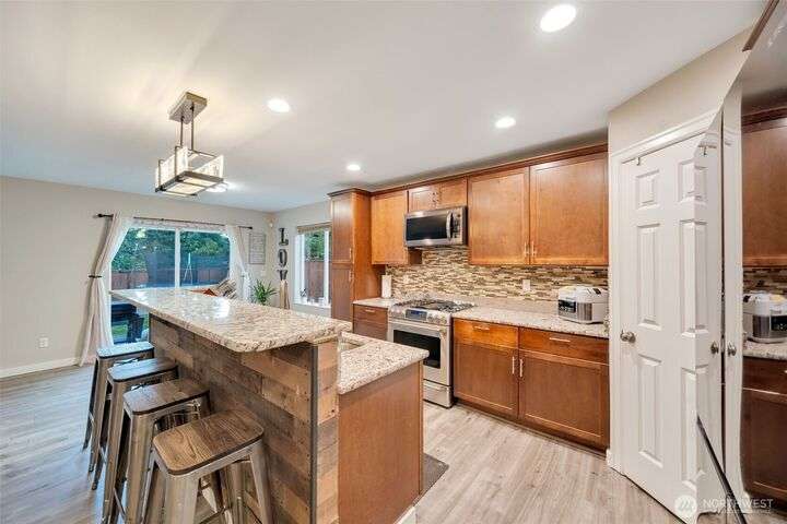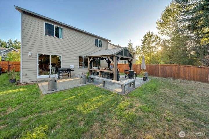 Best priced home in Maple Valley! Newly updated resale in the desirable Tahoma school district. Open concept kitchen with island seating, custom cabinets and a Costco sized pantry makes this kitchen beautiful and functional. Huge Master W/walk in closet, soaking tub and modern upscale hotel finishes. Conveniently located is the laundry room upstairs next to the other 3 bedrooms. For those now working remotely, this house boasts high speed internet and several at home work spaces. On one of the larger/private lots in the community the backyard has exposed aggregate patio and gazebo great for entertaining! Just minutes from Stores, Restaurants and trails makes this a perfect location