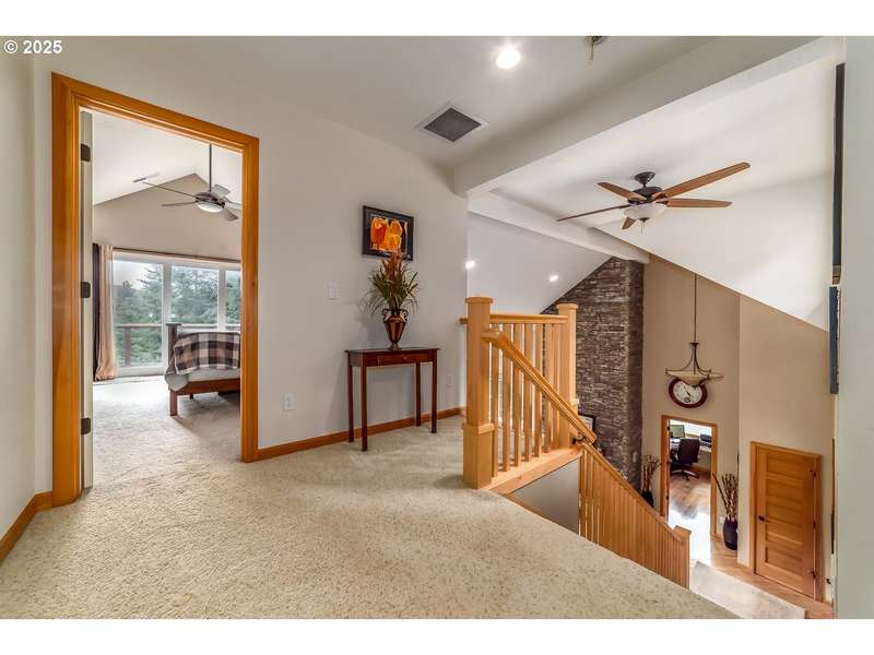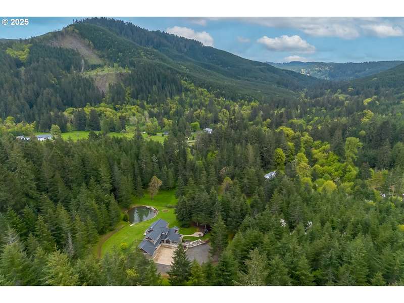 Nestled among the firs is this beautiful 5 bedroom,3.1 bath custom home set on 6.26 private acres. The main level boasts, open great room concept (living room & kitchen recently painted),kitchen w/granite counter tops, maple cabinets and floors, ss appliances include new frig & dishwasher, island w/sink and eating bar, gas cooktop, lots of storage, eating area w/slider out to covered patio where you will enjoy breath taking views. Light and bright living room w/vaulted ceilings and floor to ceiling rock fireplace, a warm and cozy area with a window seat view. Light & bright office set up w/built-ins helps make a great work from home space, additional entry near the 3-car garage has bench seating, laundry room w/sink and great storage. On the upper level you will find the primary suite w/access to a private deck to enjoy to surrounding views, gas fireplace that is dual to primary bath w/jetted tub which includes marble surround, large walk-in closet, double sinks, and walk-in shower. 2 additional bedrooms w/walk-in closets and main bath w/tub shower combo, tile counters and floor. The lower level has a family room w/stamped concrete floors, custom bar w/card room, 2 bedrooms (1 does not have a closet), under stairs storage plus large pantry/cold storage and an exterior door to a covered patio. Outside you will find a fenced park-like setting with a covered patio, 2 separate hot tub hook-ups, raised concrete garden beds, a fire pit area, pond, and beautiful territorial views. 3-car finished, extra-long garage, Generac home generator connected to the electrical panel for quick easy transfer, and a 250-gallon propane tank. Also included is a riding trail, large 32X48 finished shop w/full bath, washer dryer hook-ups, 2 RV size garage doors, RV hook-up and exterior covered parking bay. Come enjoy the quiet and serene views of your own private retreat.