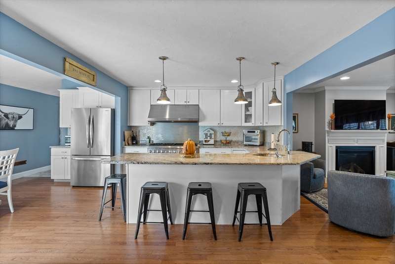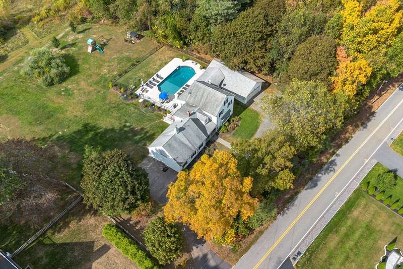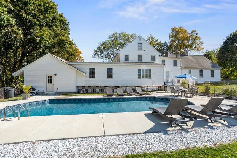 Own a piece of New England charm with this beautifully renovated farmhouse offering 4 bedrooms, 2.5 baths, and a dedicated home office. Timeless character meets smart updates: roof (2016), upgraded electrical, efficient heating/cooling, and a quality addition. The crisp gourmet kitchen features a walk-in pantry, Thermador 6-burner range with griddle and hood, abundant cabinetry, granite counters, and hardwood floors. An open, inviting family room with gas fireplace anchors the main level. The first-floor primary suite provides two walk-in closets and a spa bath with steam shower, plus a large first-floor laundry for daily ease. Step outside to your private retreat: a stunning heated, inground saltwater pool beside a tree-lined yard abutting conservation land ideal for relaxing and entertaining. An oversized garage, serene setting, and quick access to Worcester and Routes 190/290/12/110/140 add convenience. This turnkey New England home blends charm, comfort, and location!