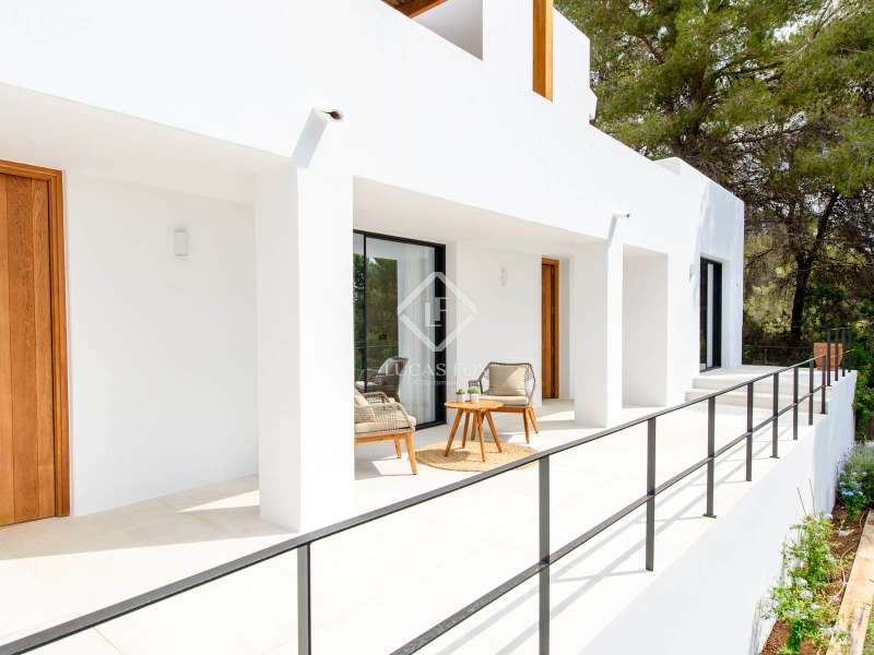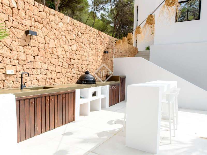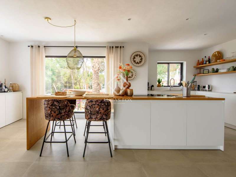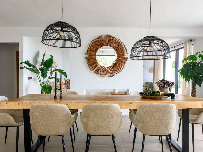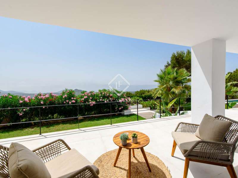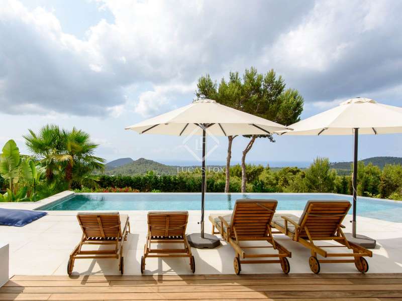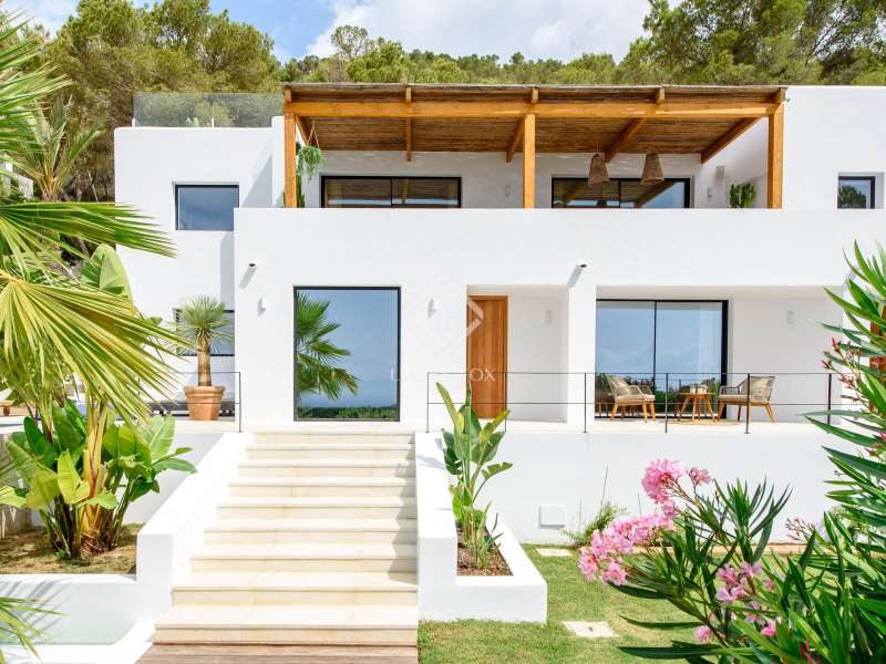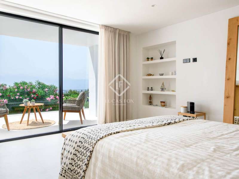 Perched in the exclusive Es Cubells area of southern Ibiza, this elegant six-bedroom villa combines panoramic sea views, complete privacy, and year-round sunshine. Set on a generous 2,288 m² plot, the property spans 365 m² across three levels, each thoughtfully designed to capture the beauty of the Mediterranean and Formentera beyond. The main floor features a bright open-plan living and dining area framed by large windows that open directly onto the pool terrace, allowing light and sea breezes to flow freely throughout the space. A fully equipped kitchen faces the water, creating a seamless connection between indoor and outdoor living. Two spacious en-suite bedrooms complete this level, offering comfort and style in equal measure. The upper floor is devoted to the main suite, which includes a walk-in wardrobe, an elegant en-suite bathroom, and a private terrace with an outdoor shower and uninterrupted views of the sea. On the lower level, three additional bedrooms provide further accommodation—one with its own bathroom and two sharing another, along with a utility and storage area. Each room opens directly onto the garden, blending contemporary comfort with the surrounding natural beauty. Outside, the landscaped grounds are designed for relaxation and entertaining. An infinity pool overlooks the sea, accompanied by an outdoor kitchen and a shaded lounge area ideal for dining or unwinding. The villa's south-facing orientation ensures abundant sunlight throughout the year, making it equally suited to long summer days and tranquil winter evenings. Situated in one of Ibiza's most desirable enclaves, Es Cubells is known for its serenity, dramatic cliffs, and breathtaking vistas. The location offers convenient access to nearby destinations, with San José just ten minutes away and both Ibiza Town and the airport within a twenty-minute drive. Beaches such as Cala d'Hort, Cala Jondal, and Ses Boques lie close by, enhancing the sense of island living at its finest. This exceptional property unites location, layout, and lifestyle in perfect harmony, a rare find on the southern coast of Ibiza. Please contact us for further information.