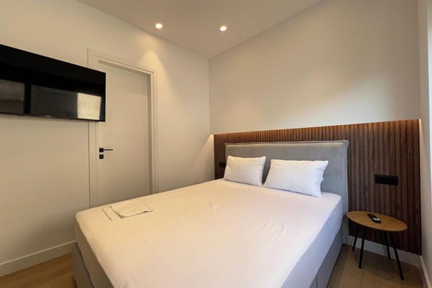 It will come with modern amenities such as A/C, a solar heater, double-glazed windows, a security door, and an alarm system. The apartment will be fully furnished and equipped with electric appliances. With a minimalist design, it is located in a prime area, close to shops, restaurants, and public transportation. The building, originally constructed in 1980, will be transformed with the latest renovations to offer modern, stylish living.