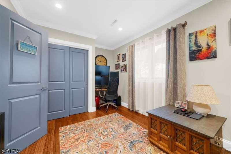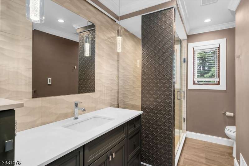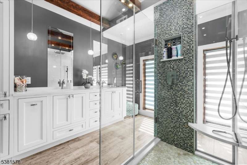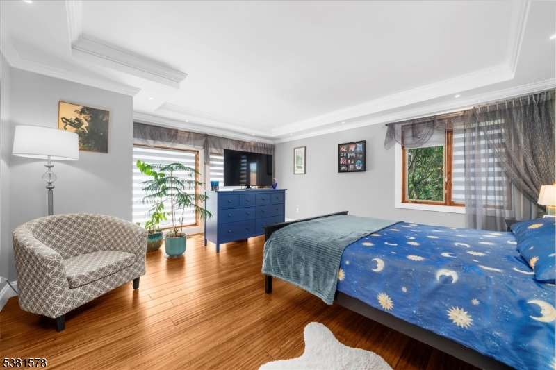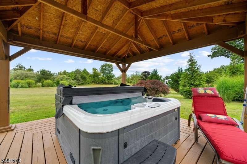 Nestled in one of Readington Townships most desirable cul-da-sacs, development is surrounded by preserved farm land, 27 Casper Berger has been fully renovated by the owner, proprietor of Stone Art Design Center, a master in kitchen and bath design. The result is a home that radiates exceptional craftsmanship, thoughtful detail, and timeless style. The inviting foyer enhanced by a knotty pine ceiling, opens into a light-filled, open concept floor plan. Rich bamboo floors, tray ceilings, and recessed lighting create a warm yet sophisticated atmosphere. The spacious living room with custom built-in shelving flows seamlessly into the dining area and the showpiece kitchen, where granite counters and a striking backsplash come together in perfect harmony. Just off the kitchen, a screened-in porch offers a quiet retreat overlooking the landscaped backyard with a patio and hot tub-an ideal setting for summer entertaining. From the foyer, a few steps lead down to the family room, anchored by a stunning wood-burning fireplace with a dramatic marble surround. This level also includes a bedroom and powder room, while a full bath, spectacular laundry room, and a flexible gym space that can be used for a multitude of things, are only steps away. Upstairs, three bedrooms and two spa-inspired full baths, all full baths with radiant floor heat await, including a luxurious primary suite designed for comfort and relaxation. Every finish and feature reflects the artistry of true craftsmanship.