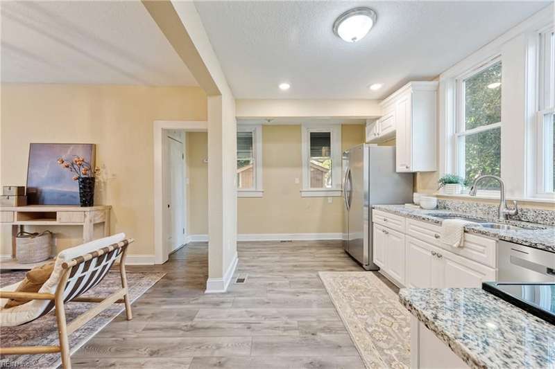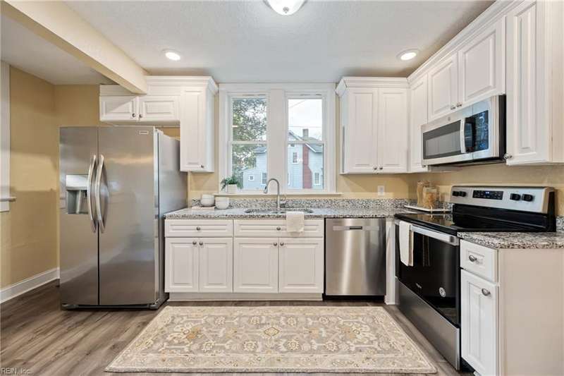 Charming 3-bedroom, 2-bath home on a corner lot in the heart of Norfolk! This cedar shake two-story was fully remodeled in 2021, blending classic character with modern updates. Inside you'll find a spacious primary suite with private bath, stylish LVP flooring, granite counters, and stainless steel appliances. Enjoy outdoor living with two covered porches, a covered balcony off second bedroom, and a fully fenced backyard featuring a new oversized shed with electric. The walk-out basement adds extra storage. Ideally located near Old Dominion University, Sentara Norfolk General, CHKD, military bases, and the Elizabeth River Trail, with quick access to Ghent dining, shopping, and entertainment. A wonderful mix of charm, convenience, and city living!