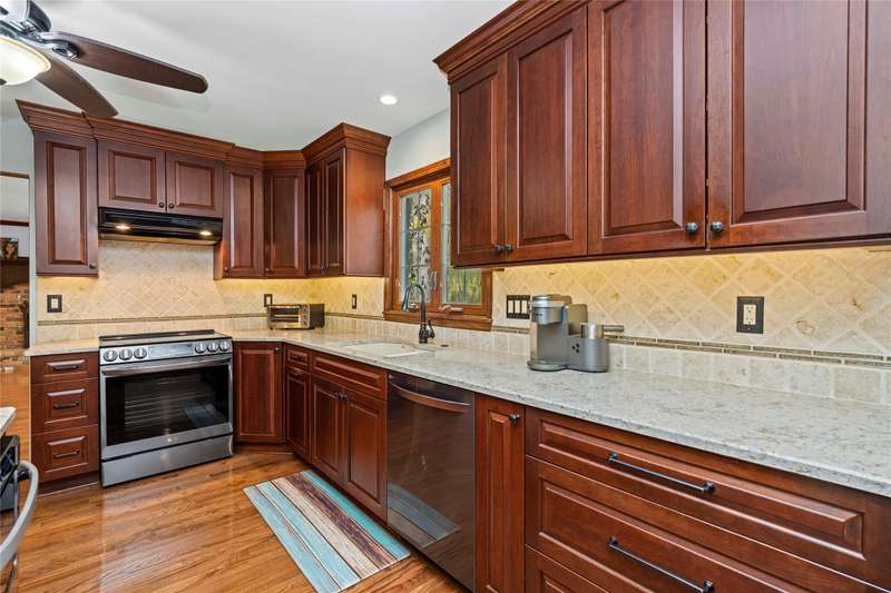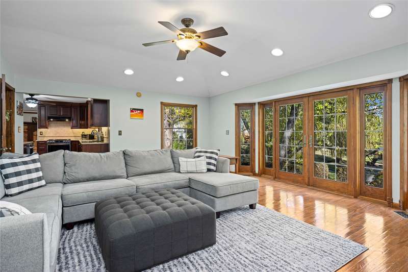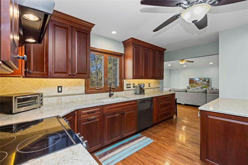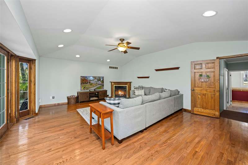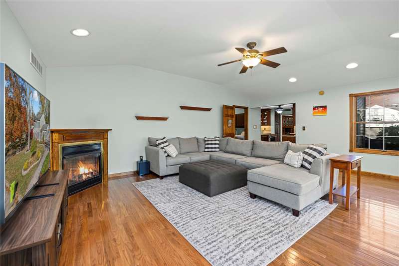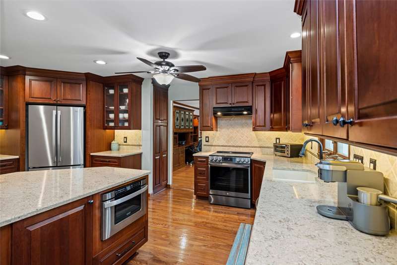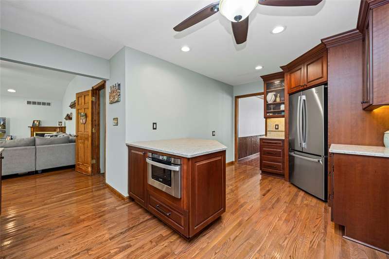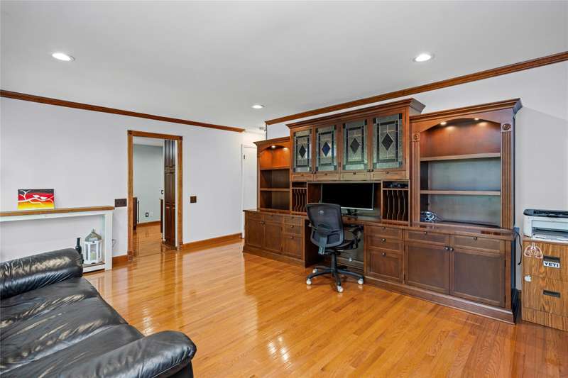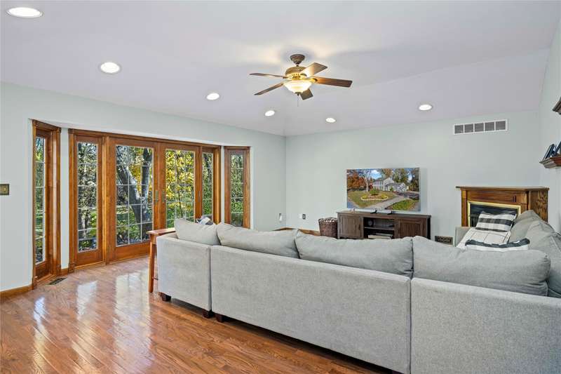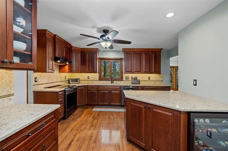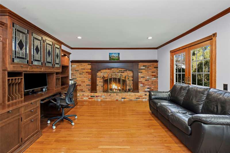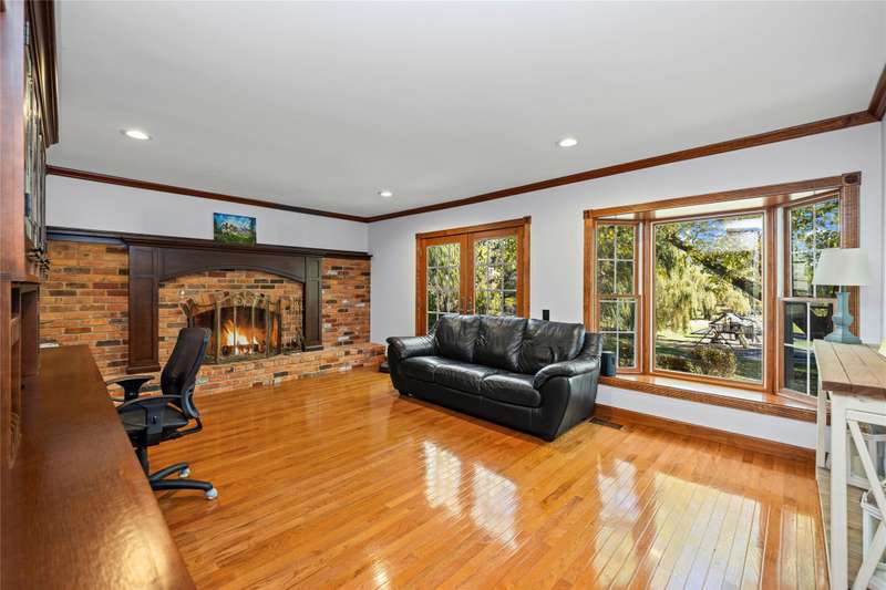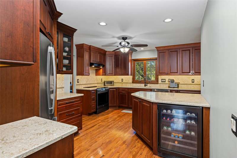 Welcome to this well maintained 4-bedroom, 3.5-bath home set on a premium lot with scenic views of the community park.. The front yard impresses with professional landscaping, a brick walkway, and a welcoming front porch. Step inside and you’ll find an updated chef's delight kitchen with stainless steel appliances and showcasing quartz countertops, huge island, beverage refrigerator, and abundant storage. The spacious great room addition is filled with natural light and features hardwood floors and French doors leading directly to the patio. A flexible first floor room with an adjacent full bath offers endless possibilities. It is ideal for Aupair, home office or guest suite. The formal dining room provides plenty of space for gatherings, while the central family room includes a brick fireplace and custom built-in desk, creating a warm and inviting atmosphere. A convenient first floor laundry room includes extra cabinets for added organization and a half bath. The second story includes the expansive primary suite which offers a custom walk-through closet and an updated luxurious ensuite bath with granite countertops and a walk-in shower. The finished lower level provides additional living space. It is perfect for a recreation room, media area, or playroom with ample storage. The property offers exceptional outdoor living with a private, shaded backyard featuring a custom boulder wall, vibrant landscaping, and an expansive brick paver patio which is perfect for relaxing or entertaining. BTVAI