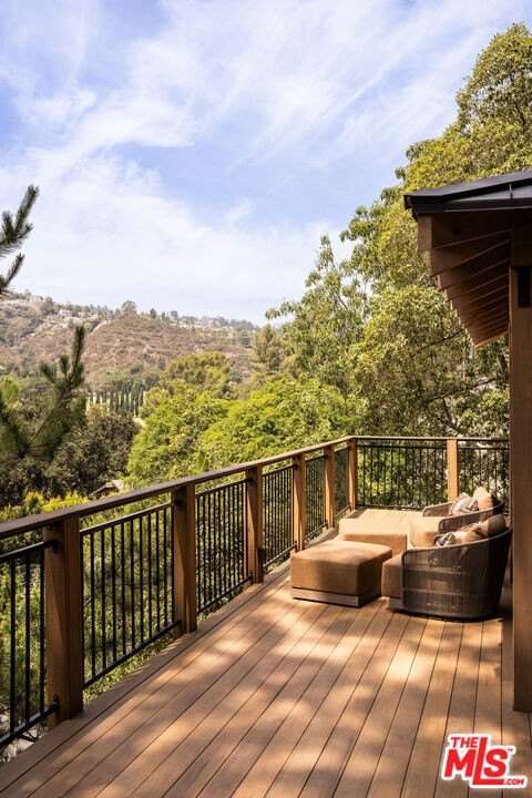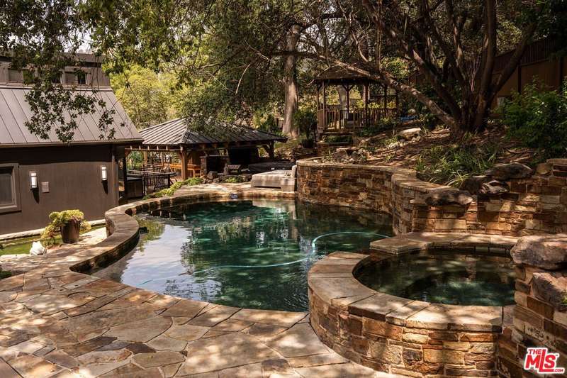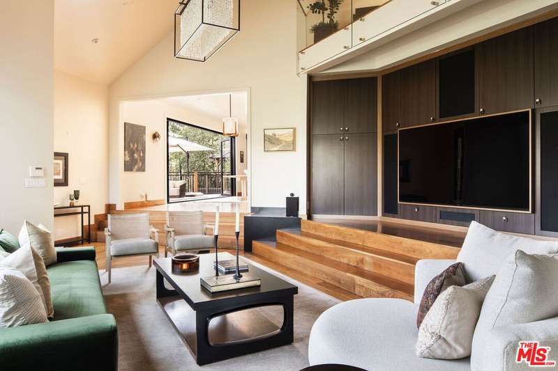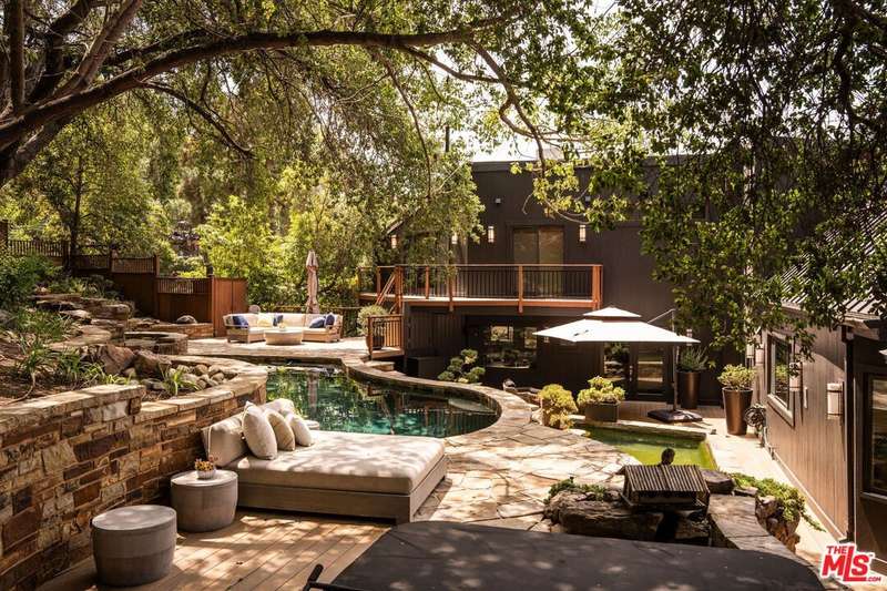 Modern Mountain Retreat overlooking prime Chevy Chase Canyon. Experience bespoke serene luxury - the main floor w/ walnut hardwood floors, large living room w/ custom media experience, 12 foot Onyx fireplace, dining + separate study and large chef's kitchen w/ Italian Polyform cabinetry and Miele appliances. Primary suite as true sanctuary - complete with closet, dressing room, loft space and perfect bathroom w/ Ann Sacks tile and Toto appliances. 3bd/ 2ba upstairs for family and guests. Lower floor features dressing room/gym, large closets and bathroom, a large climate controlled wine cellar, laundry/storage and in-law suite w. private entrance. Outside feels more akin to a Lake Tahoe Chalet, with large swimming pool, in ground and above ground spas, koi pond and fountains, and thoughtfully designed seating areas, outdoor fireplace + kitchen and gaming area, all surrounded by mature trees and inspiring canyon views. An unfindable combination of home and getaway.