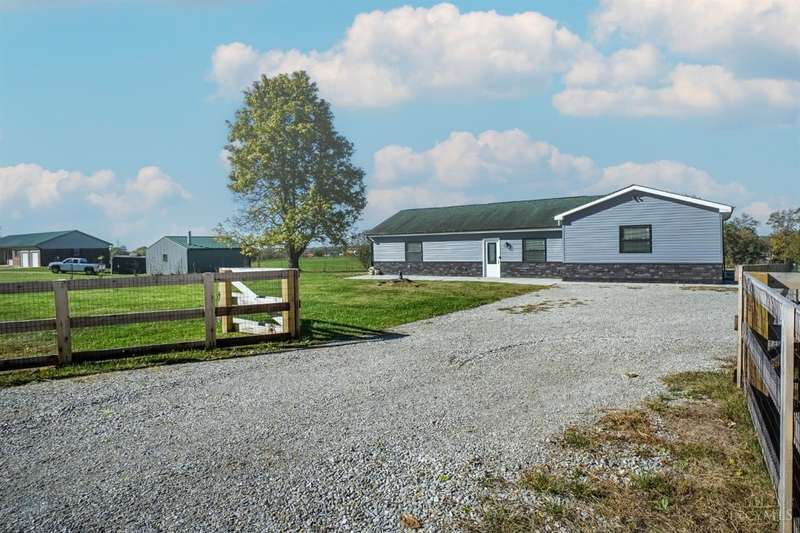 Hard-to-find, Guilford 3 BR, 2 BA ranch! 1+ level, fenced acre with peaceful valley views. Updated kitchen features granite counters, shaker cabinets, island, stainless appliances & double-oven - great for hosting your holiday gatherings! Updated baths! Luxury-vinyl plank flooring, vinyl siding, gas HVAC & vinyl windows. 1st-floor laundry & upgraded lighting. Walkout partial basement, 40 x 10 concrete front patio & 15 x 9 covered side porch. 30x35 metal outbuilding (garage) with electric, 2 10 x 10 overhead doors and 1 9 x 7 service door on the side. Gated entry & immediate occupancy!