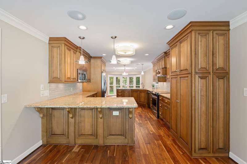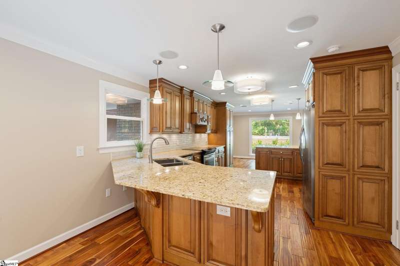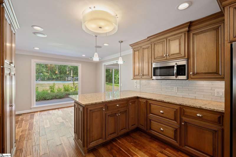 This home is listed by Barb Riggs with Wilson Associates. (864) 423-2783 barb@wilsonassociates.net. Rare find in the heart of Simpsonville! Nestled on 4 private, wooded acres, this incredible property offers the perfect combination of space, privacy, and convenience. Enjoy your own backyard retreat with a sparkling inground pool, fenced yard, and endless outdoor living possibilities! The home has been completely renovated with attention to every detail. The stunning kitchen features custom cabinetry, granite countertops, and expansive windows across the back of the home that flood the space with natural light and showcasing the serene wooded views! The main level primary suite is a true retreat with bay windows, custom built-ins, a gorgeous soaker tub, walk in closet and pocket doors. Upstairs you will find three additional bedrooms and two full baths. Gleaming hardwood floors, stylish new light fixtures, and thoughtful updates throughout highlight the quality and craftsmanship of this special home. To top it off, the property includes an oversized Detached 2 car garage that includes electrical and water - ideal for hobbies, storage and/or extra parking. This one of a kind Simpsonville property is the perfect blend of privacy, luxury, and convenience!