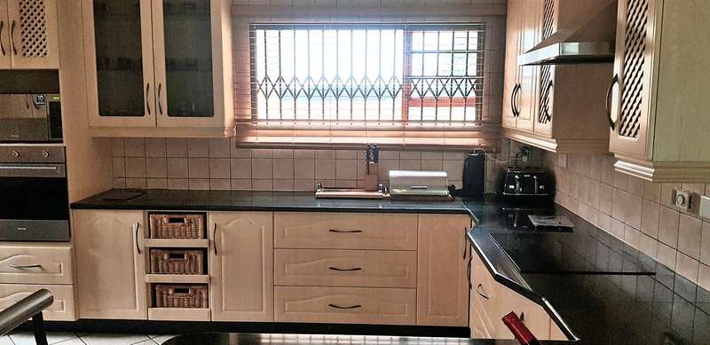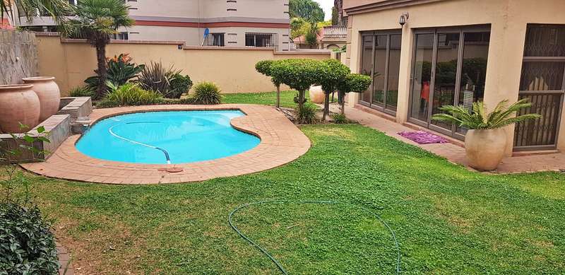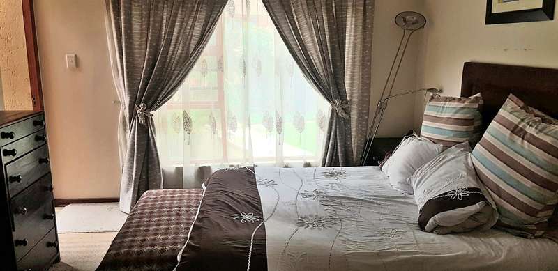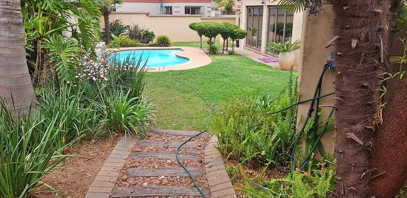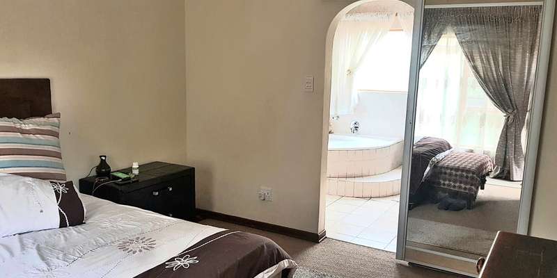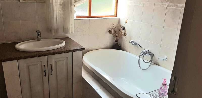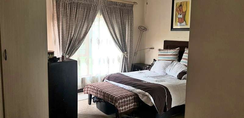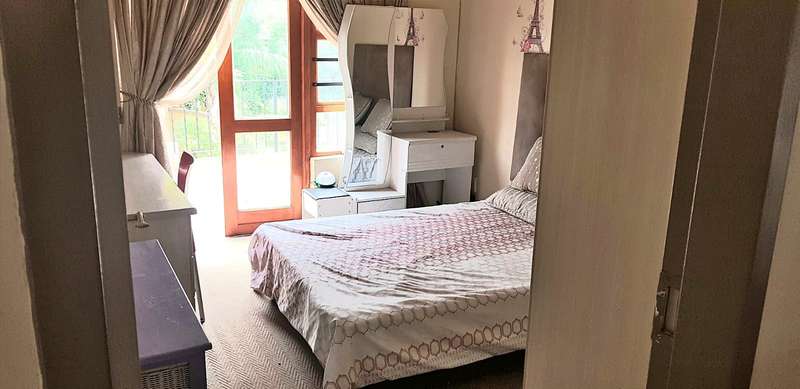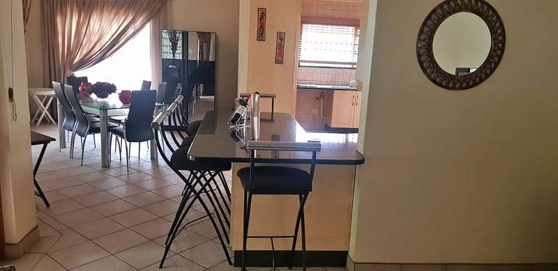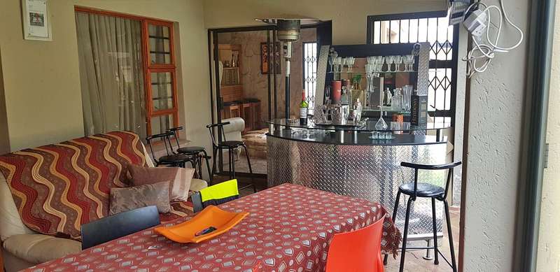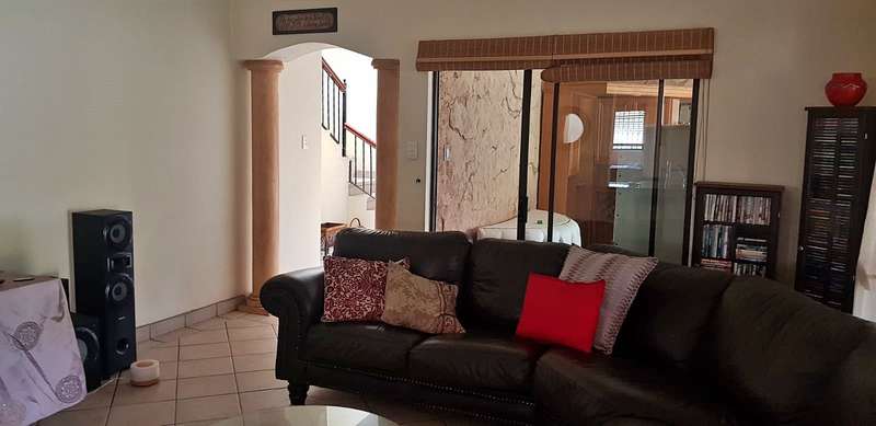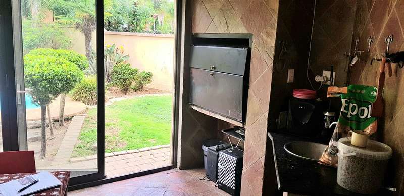 A double-storey 4-bedroom house is located within a secure area with gated entry points, providing 24/7 security. This spacious and comfortable residential property is designed for modern living within a gated and protected community. Upstairs, there are 4 bedrooms - 3 bedrooms sharing a full bathroom with built-in cupboards, and the main bedroom with an ensuite bathroom. The double-storey house also has a balcony accessible from one or more bedrooms, providing a spot for relaxation and outdoor enjoyment. Additionally, there is space for a study or play area with lots of built-in cupboards. Downstairs, there is an open plan area consisting of a lounge, dining room, kitchen, washing room, and pantry. All the kitchen tops are marble with a breakfast nook. This open layout fosters a sense of space and encourages social interaction. There is also an entertainment area with a built-in braai. Furthermore, this house has a relaxation area with a Jacuzzi. In addition, there is a guest toilet downstairs. The front yard features a pool, and the double garage is big enough for 4 cars. The house also has a private backyard with an outside room containing a toilet and shower. Pets are allowed.