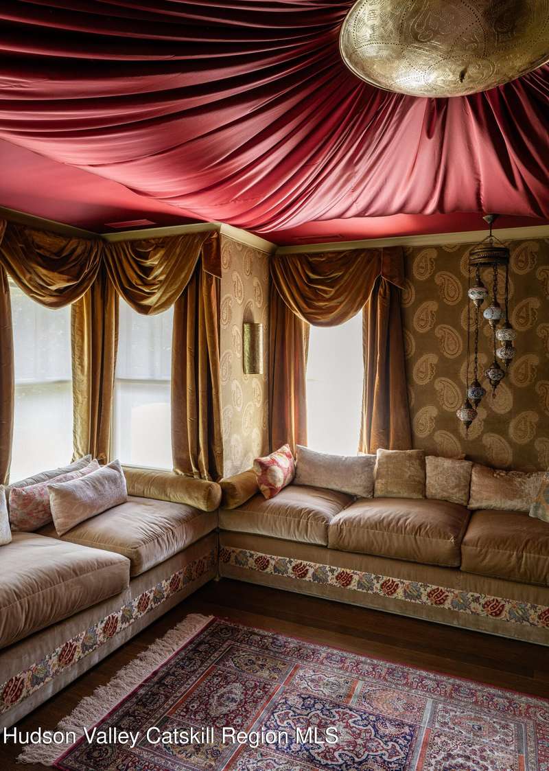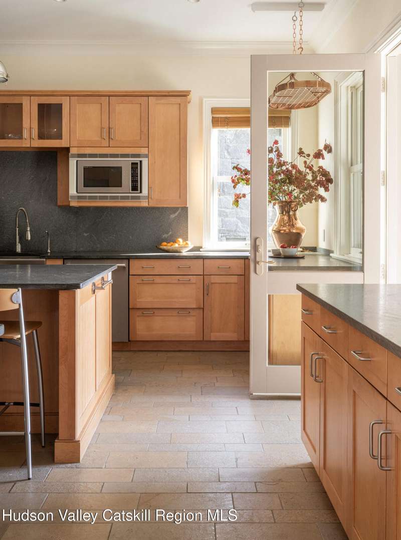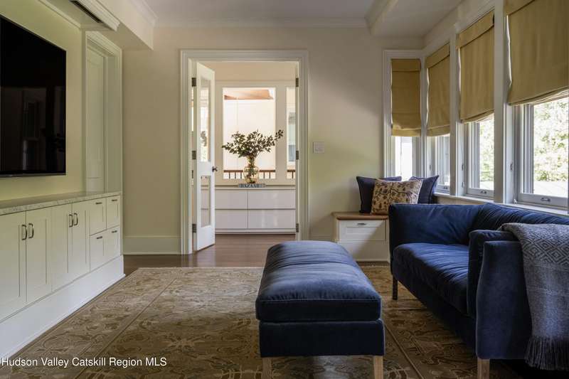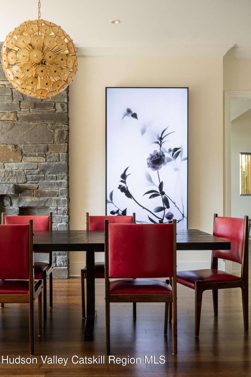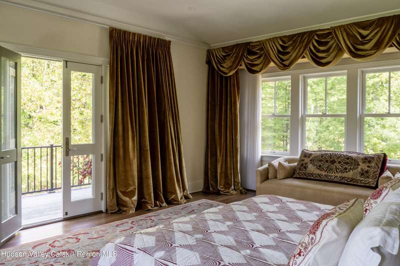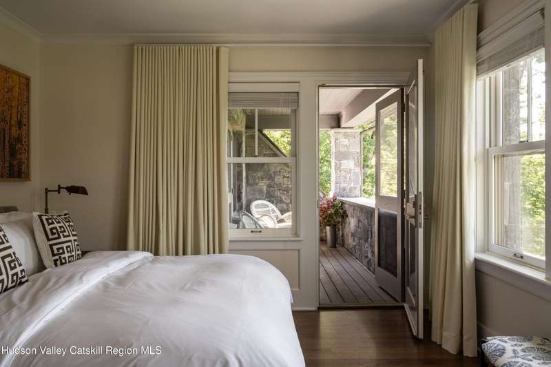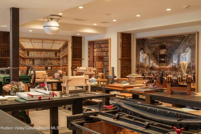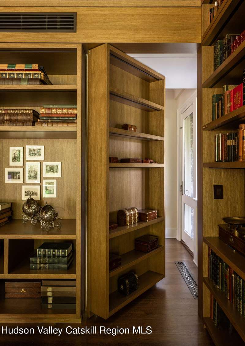 Stonecrest on the Hudson is a stunningly designed home on 16 inspiringly landscaped acres with extensive views of the river and the Catskills. A creation of stone, metal, and glass, the home, though imposing, inhabits its environment with seamless grace and is curated for comfort and meditative living. Many exquisite features make Stonecrest one-of-a-kind, impossible to duplicate. Upon approach, visitors notice the striking geometric roof lines and large portico. Inside, the home is open to light and nature through windows and soaring walls of glass. In the great room, forty-foot ceilings, a floor-to-ceiling stone fireplace surround, and curved transoms atop doors and windows make entry into Stonecrest a breathtaking experience. At the same time, there are many private spots for contemplation and quiet reflection that balance the grandeur of this remarkable home.In the south wing are a chef's kitchen with butler's pantry and a formal dining room that opens to a bluestone terrace. Top of the line appliances, honed granite countertops, and double sinks and dishwashers ensure that anything can happen in this room, from an afternoon snack to a formal dinner for 30 people. The butler's pantry has a second subzero refrigerator, a wine cooler, and sink. Also on this side of the house is an all-season sitting room and a mud room with its own covered portico for deliveries and access to the 3-car garage.On the north end of the home is a hallway art gallery, a private deck, an en suite guest bedroom, and best of all, a hidden library awaiting behind a secret door, with floor to ceiling windows, a fireplace, access to a private bluestone patio, and views of the river.The second floor can be reached by one of two gracious open stairways. A wide walkway that overlooks the great room extends the length of this second level. At one end is the primary suite that includes a private deck, a walk-through closet with separate dressing rooms and vanity space, and a spacious bathroom with jacuzzi and glass-bricked shower. The primary bedroom has windows on both sides with views of the river and sloping lawns. Next door is a second en suite bedroom that could also serve as a sitting room, den, or office.At the south side of the second story are two more en suite bedrooms, a media room, and entrance to an apartment annex with an open concept kitchen and living space, bedroom, and full bath. Perfect for employees or guests, this cozy space can be accessed from the back staircase for added privacy.On the lowest floor, a walk-out basement, an enormous space for creative pursuits, has easy access from inside or outside the home. Ample windows, a surround-sound system, and generous storage make this area versatile and convenient. Also on this level is a theater room and a second laundry/utility room.This property as it exists today cannot be recreated. For example, directly above the Hudson River, there is a resort-style saltwater swimming pool with stone pool house that includes a full kitchen and gathering space. Current zoning laws do not permit this kind of design nowadays.Countless stunning gems throughout the property include a reflecting pool with firepit and river views, an amphitheater facing the Hudson, a quarter-mile spiral labyrinth with stone paths divided by wild thyme, and a Koi-stocked pond with falling water. Seating areas dot the edge of the property above the river where spending hours watching the ships go by becomes a tranquil act of meditation.Though the home is an easy distance from charming Hudson Valley towns like Rhinebeck and a one-minute drive to the Rhinecliff Amtrak station, Stonecrest on the Hudson is as private and lost to time as an enchanted kingdom.