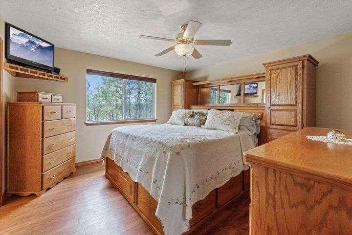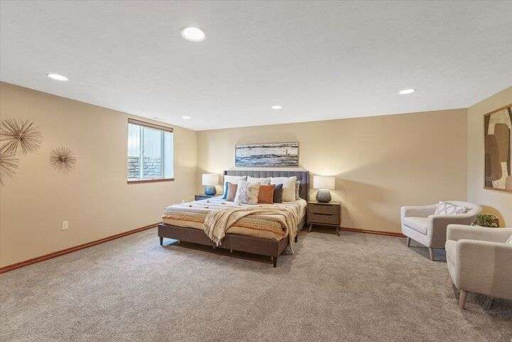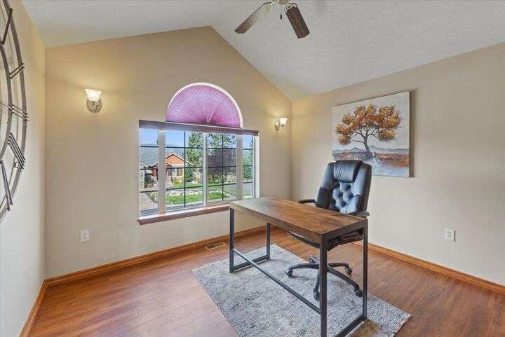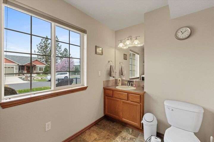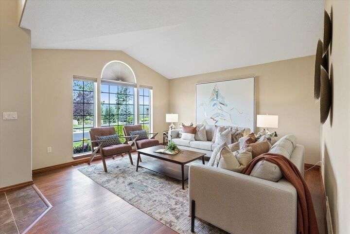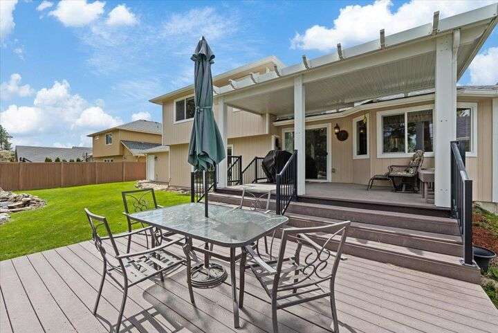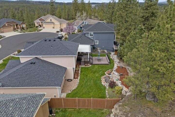 Your chance to own an amazing home in this gated development. Located on a quiet cul-de-sac, this property features a beautifully landscaped backyard plus a natural area. Enjoy outdoor living on the deck covered by the pergola to take in the water feature and peaceful views. Inside, the multi-level layout includes 3 bedrooms upstairs, including the primary suite with a walk-in closet, soaking tub, and shower. The huge kitchen boasts granite countertops, stainless steel appliances, a newer Bosch dishwasher, ample counter space and a pantry. Vaulted ceilings on the main level. Step down to the spacious family room with custom built-in cabinets & gas fireplace, plus a laundry room and half bath. Durable vinyl plank flooring flows throughout the home. The basement features a versatile finished space—ideal as a second family room or a roomy 4th bedroom. Nice storage in the mechanical room. 3-car garage with an area for a workshop. Just minutes to the highly rated Mead schools, golf courses, shopping & restaurants.