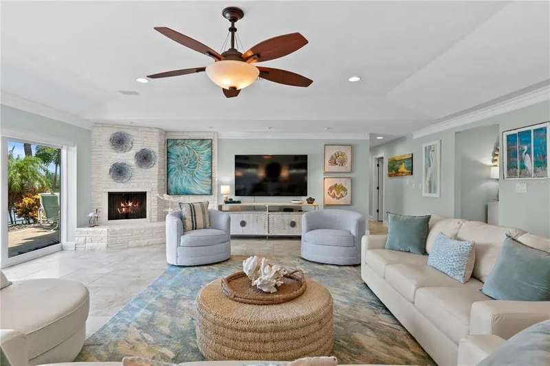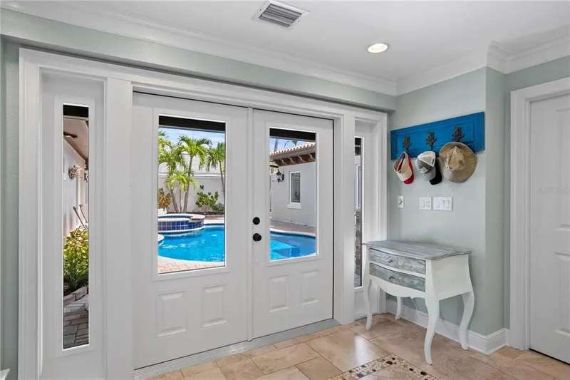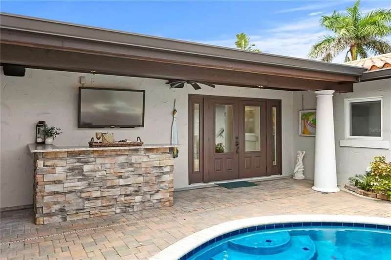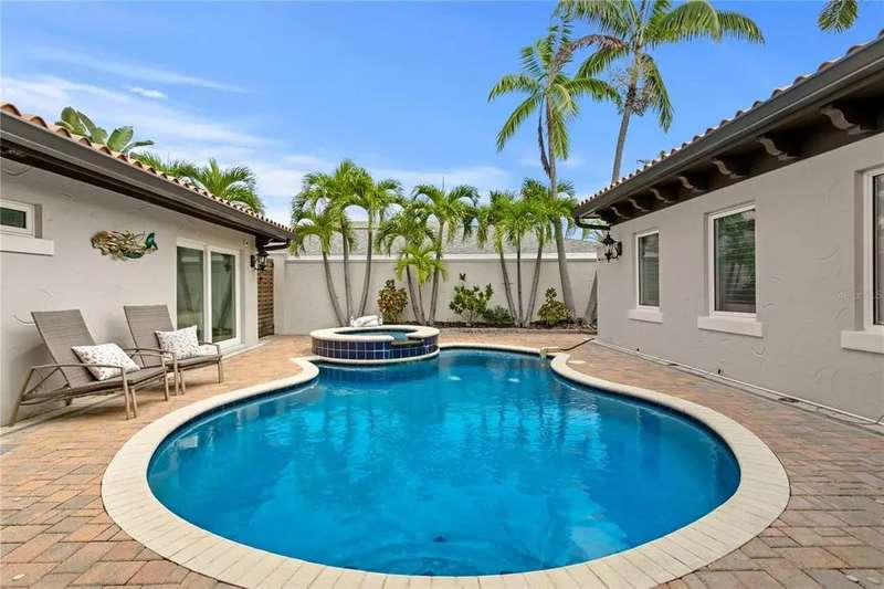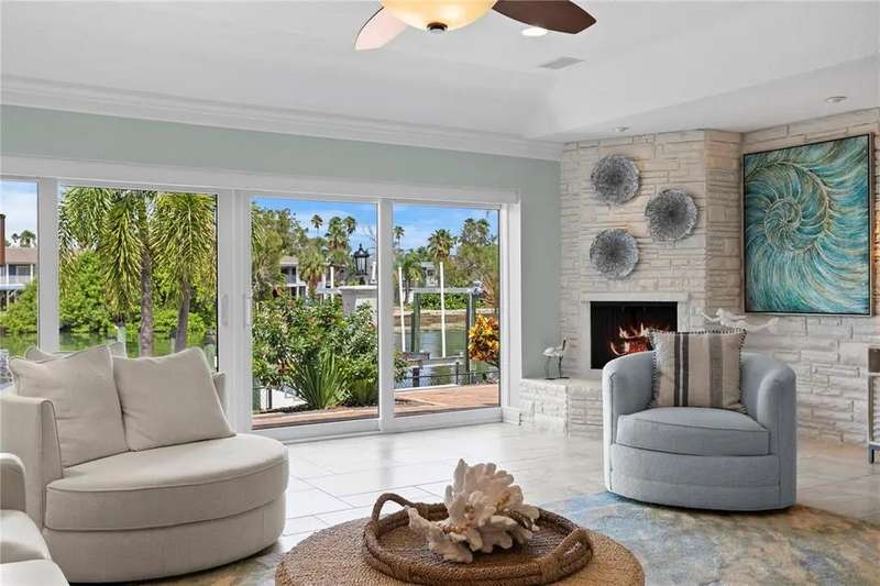 Waterfront Living on Vina Del Mar Island Experience the best of coastal living on Pass-A-Grille Back Channel with breathtaking views of the iconic Don CeSar. This Mediterranean-inspired home includes a private casita with full bath and separate entrance off the courtyard pool—ideal for guests, extended family, or a private office retreat. Some of the attributes include a fully appointed dock with boat lift, impact-rated windows and doors, and classic clay tile roof ensure both function and style. Inside, a chef’s kitchen with island seating anchors the home, perfect for both casual mornings and lively gatherings. The spacious dining room sets the stage for memorable dinner parties, while the living room—with fabulous fireplace and water views—flows seamlessly to the waterfront patio. The primary suite offers private water views and patio access, with a spa-inspired bath featuring dual vanities, glass shower, garden tub, separate water closet, and two walk-in closets. A guest room with sliding doors opens directly to the pool area. Outdoors, a resort-style courtyard awaits with pool, hot tub, summer kitchen, and lush landscaping—perfect for entertaining or quiet relaxation. A split two-car garage completes this well-appointed home. Enjoy an unparalleled lifestyle on desirable Vina Del Mar Island, just minutes from the white sandy beaches, charming Pass-A-Grille, and vibrant downtown St. Petersburg.