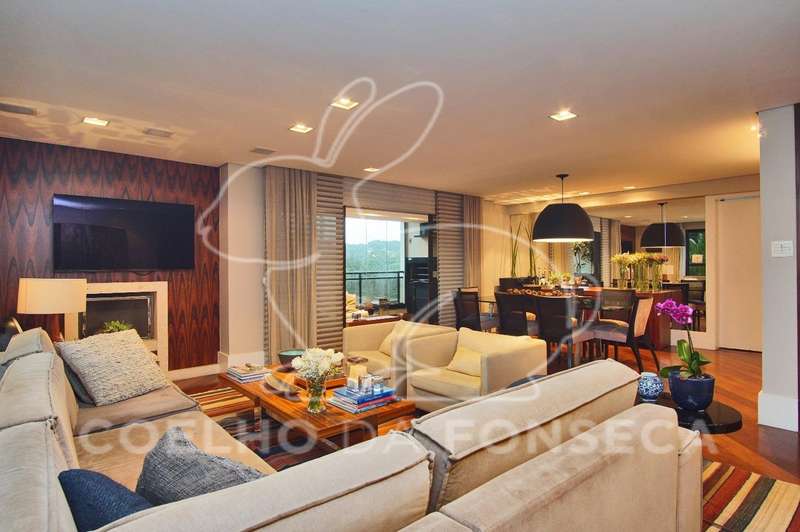 Apartamento muito aconchegante com living integrado, varanda gourmet com churrasqueira, lareira para os dias frios e escritório. Suítes com muitos armários, ar condicionado, a master possui closet e varanda, Possui lavabo, despensa, área de serviço, dependências de funcionário, depósito amplo no subsolo. O condomínio conta com piscina, área fitness, salão de festas, jogos e playground. Hall social e de serviços privativos, entrada da garagem em rua fechada, portaria de pedestre blindada e com clausura.\r