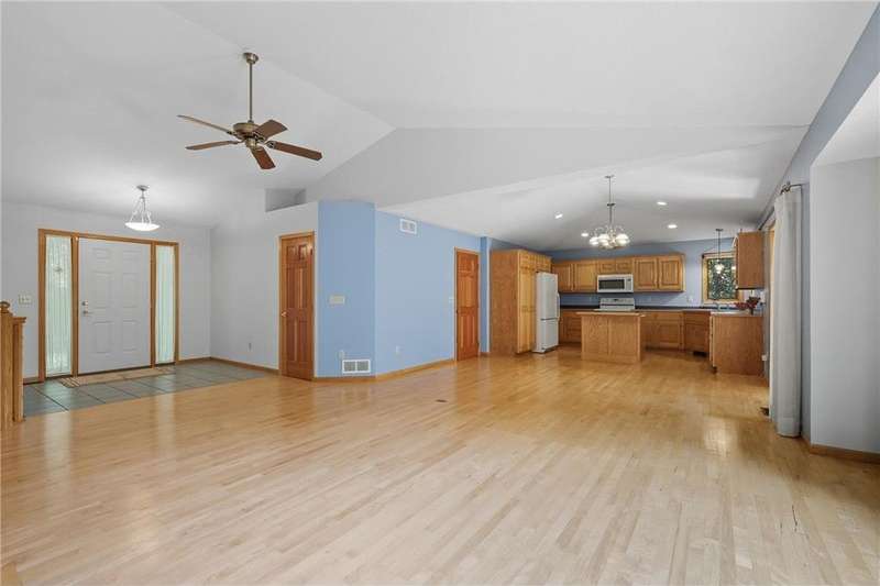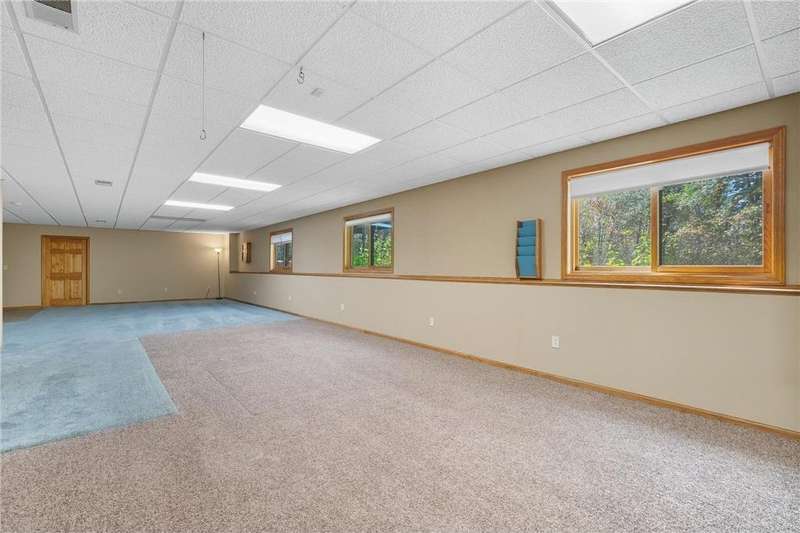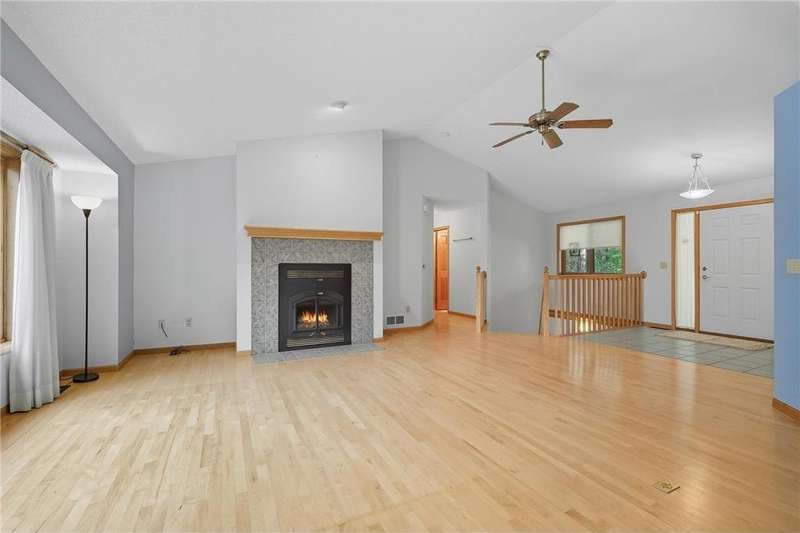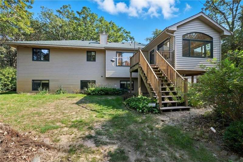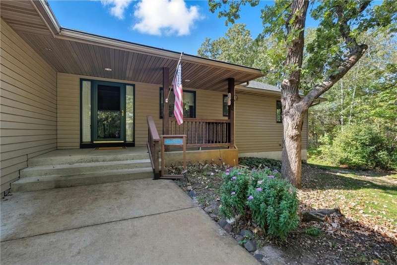 Exceptional home located on over 6 acres featuring open floor plan, abundant kitchen cabinetry & counterspace, center island, and gleaming hardwood floors. Other highlights of this move-in condition home includes: living room with fireplace, private deck, front porch, and lower level family & recreation rooms. Relax in the four season porch overlooking the private backyard. Enjoy the one level living with finished lower level! Nestled on private setting yet only minutes to freeway access. Take advantage of all the features and acreage this home has to offer!