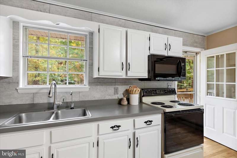 Welcome to this charming split-level home, a sturdy and timeless retreat tucked away in a peaceful wooded setting. Surrounded by mature trees on over half an acre, this property offers privacy, nature views, and the feeling of being in the country, yet it's only eight miles from the beach and close to shopping, dining, wineries, golf and everyday conveniences. Best of all, there's no HOA, giving you the freedom to make the space your own. The home's classic partial brick exterior and solid construction have truly stood the test of time, complemented by thoughtful modern updates including new flooring and fresh interior paint. The roof was partially replaced in 2020, with the majority newly completed in December 2024, offering peace of mind for years to come. Inside, the main level features a welcoming living room with new LVP flooring. The kitchen, located at the back of the home, features new hardwood flooring, and a large window that fills the space with natural light and offers a beautiful view of the outdoors. White painted cabinetry, a double sink with a backyard view, built-in microwave, and space for a table make it both functional and inviting. A convenient pass-through to the living room create an easy flow between spaces, perfect for everyday living and entertaining. Upstairs are two comfortable bedrooms, each with new LVP flooring and peaceful views of the surrounding trees, along with a full bathroom. One bedroom features a deep closet and a view of the backyard, offering a relaxing retreat at the end of the day. You will also find a hall storage closet on this floor. The lower level adds flexibility with a spacious family room featuring a charming brick accent wall and a wood-burning stove that adds warmth and character. While a separate entrance sheltered by an awning with walkout stairs to the backyard makes this level ideal for guests or a future bedroom suite. On the lower level there is also a large utility room, which houses the washer and dryer, offers plenty of storage space and the potential for a future bathroom. Step out from the kitchen to a wood deck with a ramp, overlooking a tranquil, tree-filled backyard. Electric service is already run to a post where a previous shed once stood, offering a perfect spot for a new shed or detached garage. A long, private driveway adds to the convenience and country charm. Blending rustic warmth with practical updates and coastal proximity, this inviting home offers peaceful living in a natural setting without HOA restrictions and just a short drive to the beach.