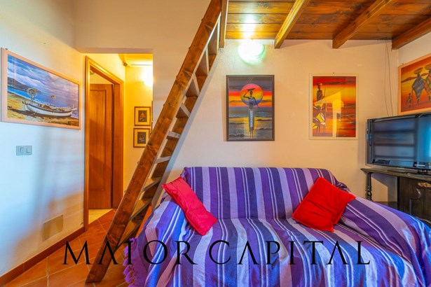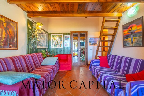 Situated in a quiet and private setting, the house is on one level with a practical loft and has a private front garden perfect for relaxing moments or al fresco dining. The covered veranda, with a panoramic view of the sea, is the ideal place to enjoy the sea breeze and the charm of the Sardinian landscape.