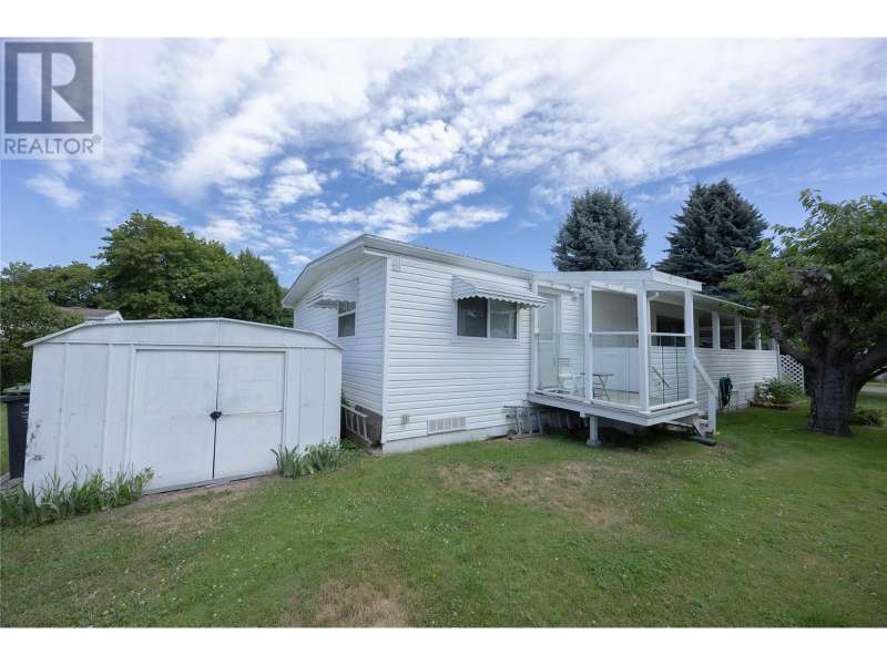Welcome to Central Mobile Park on Casorso. Centrally located and close to all amenities including Rotary Beach, Eldorado and Manteo. Double wide with 2 bedroom, 2 full bathrooms. kitchen, dining and living areas although defined, are open to one another to allow maximum light and wonderful flow of space. The large covered porch with gate is perfect for entertaining, relaxing and enjoying the wonderful Okanagan weather. The storage space is conveniently located on the porch and has ample room for storage. The covered carport has room for 2 vehicles. This is a 55+ park. (id:7434)