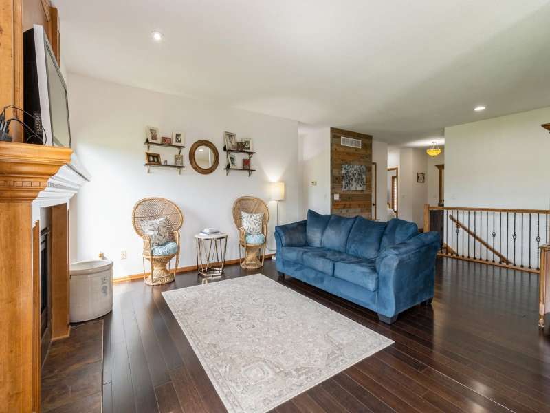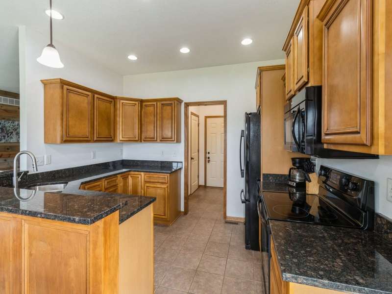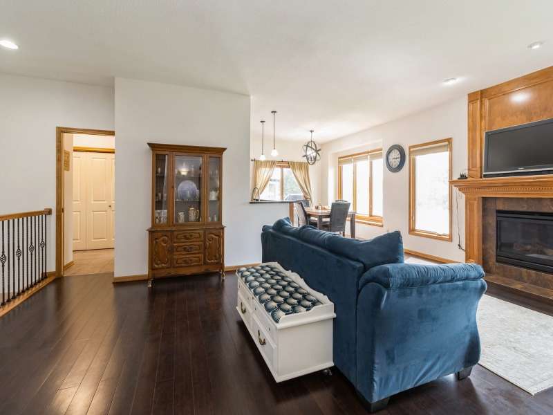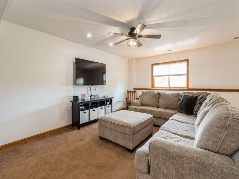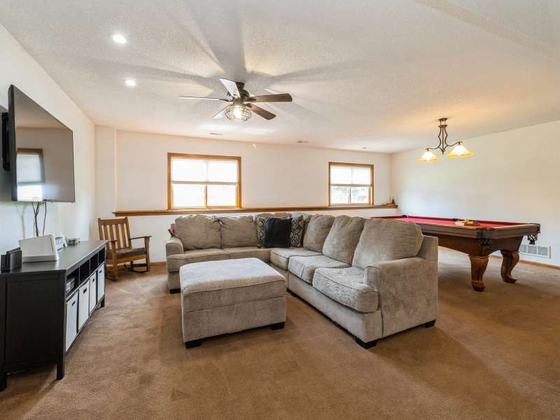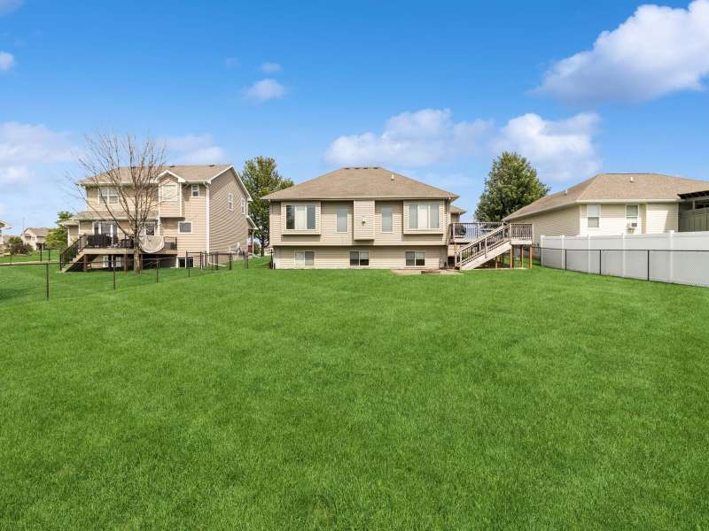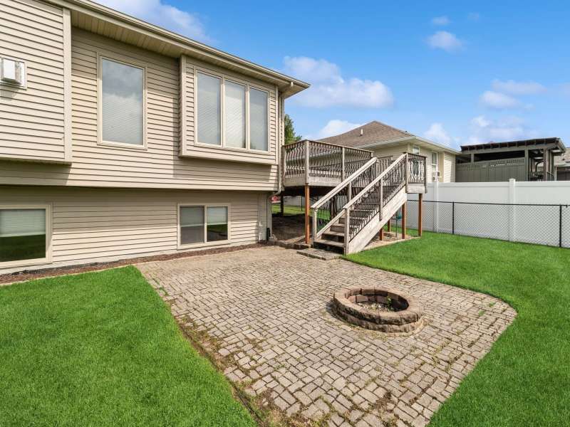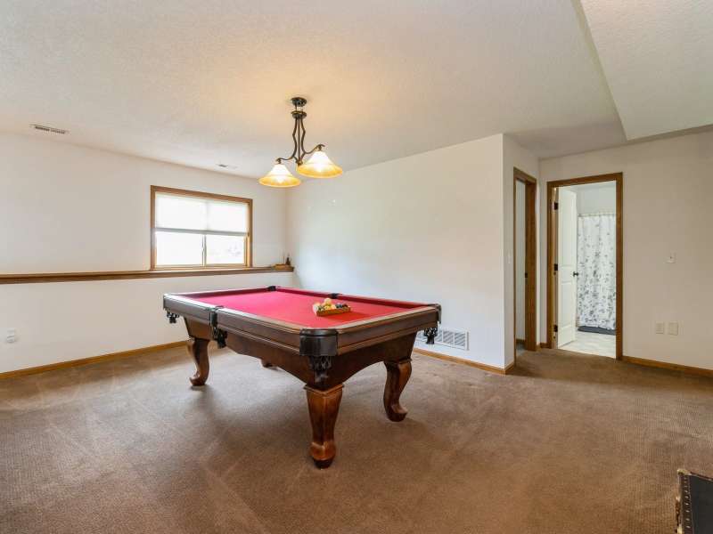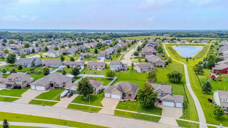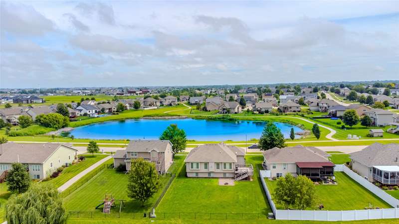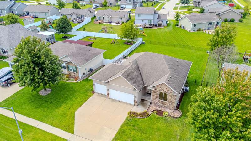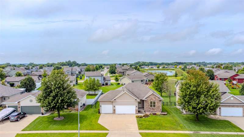 Beautiful RANCH home offer spacious primary suite w/ box ceiling, walk-in closet, double vanity, shower, and relaxing bubble tub. Front bedroom has an oversized window for added natural light. Hardwood floors and fresh interior paint throughout. Kitchen includes all appliances and connects to a dining area overlooking the living room with cozy fireplace. Drop zone off the 3-car garage. Lower level features a large family room w/pool table, daylight windows, office/flex space, bedroom, and bath. Oversized fenced yard with patio, fire pit areaand just across the street from the pond. Easy access to schools, parks, trails, and Saylorville Lake.