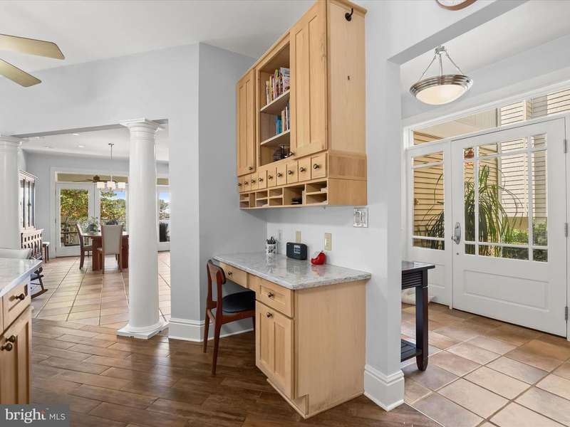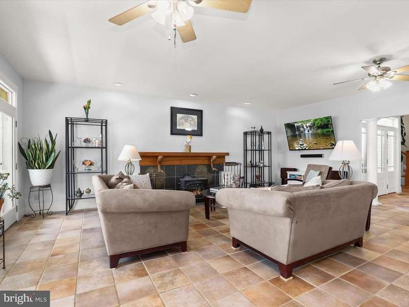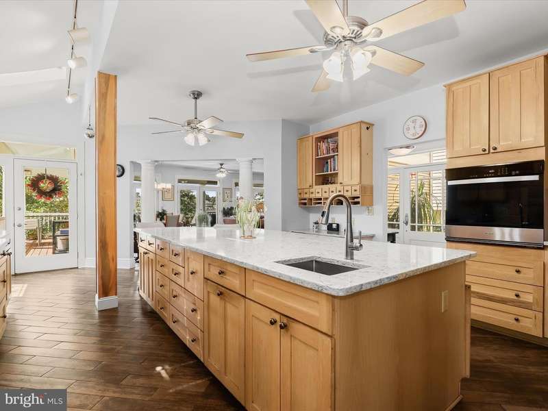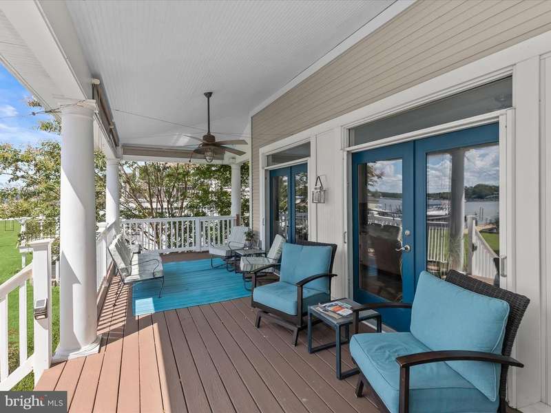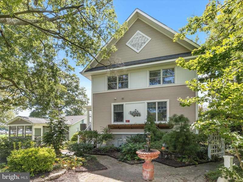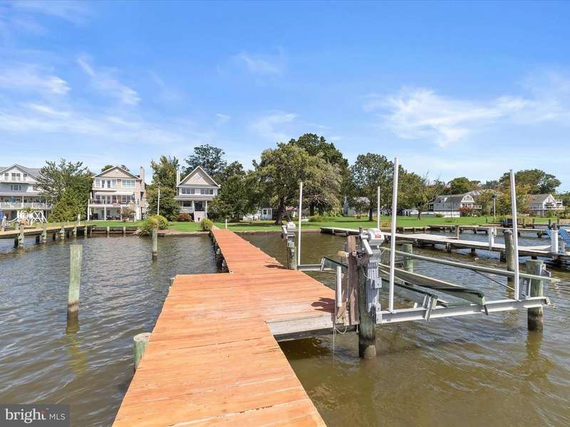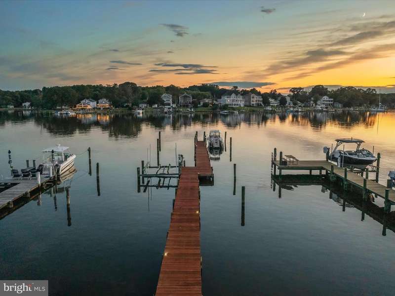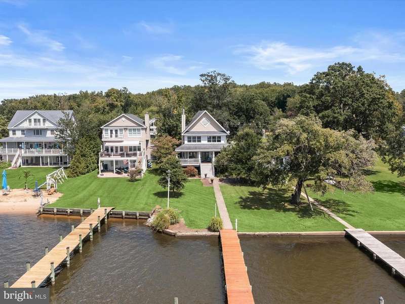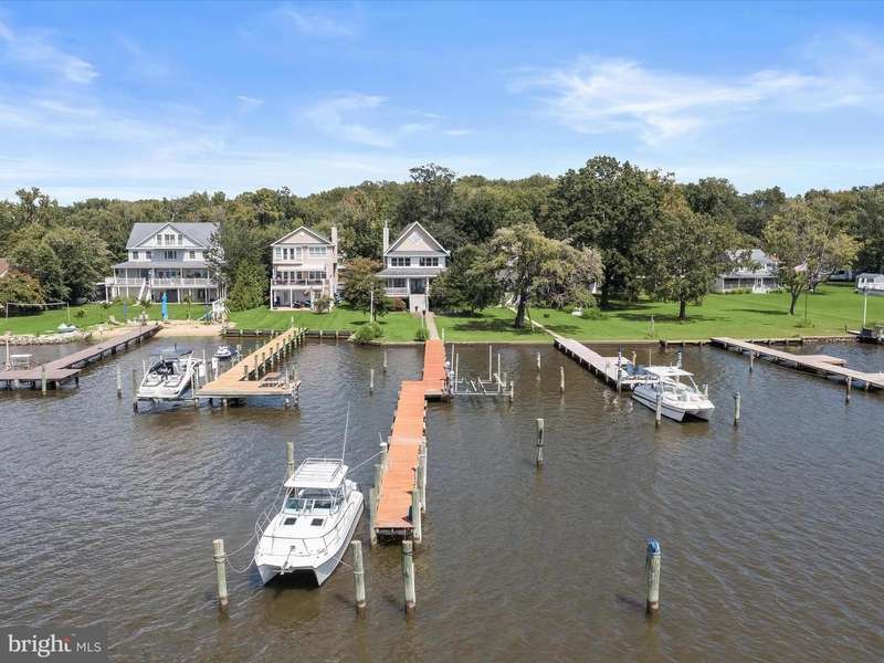 If you've ever dreamed of waterfront living, 824 Seneca Park Road makes it a reality. This 4-bedroom, 3-bath home welcomes you with a thoughtfully landscaped lawn and a sweeping wraparound porch that captures stunning views of Seneca Creek. Inside, the open floor plan begins with a pillared entry to the spacious living room, where a cozy wood-burning stove and easy access to the porch create a warm, inviting atmosphere. The adjoining dining area shares the same peaceful water views, setting the stage for gatherings both large and small. The gourmet eat-in kitchen combines style and function with custom hickory cabinetry, stainless steel appliances, including a new oven (2025) and dishwasher (2022), and quartz countertops (2022). A striking 11-foot center island with a wet sink, wall oven, and planning station anchors the space, while skylights bathe the room in natural light. Convenience meets comfort on the main level with a bedroom, a full bath, and a fully finished laundry room. Upstairs, the primary suite is a true retreat. A sitting room surrounded by windows offers sweeping views of your 190-foot pier, while double entry doors lead into the suite itself, featuring two walk-in closets and a spa-inspired bath with new vanities, a Jacuzzi tub, glass-enclosed shower with designer tile, and a private water closet. Two additional bedrooms connected by a dual-entry bath complete the upper level. Outdoor living shines here. The private pier, refinished along with the deck in 2025, features a boat lift accommodating up to 8,000 lbs. and a MLW of approximately 8', all with coveted southwest exposure. The detached garage with electric service includes a workshop and an unfinished loft with sewage hook-up, perfect for a future studio, office, or guest suite. A brand-new asphalt driveway (2025) completes the property. Located close to I-95, shopping, and dining, this home places you in the heart of the Bowleys Quarters lifestyle, where local seafood restaurants, Bengie's Drive-In Theatre, and the Middle River Lighted Boat Parade are just minutes away. This home truly has it all; waterfront living at its best with modern comfort and convenience.