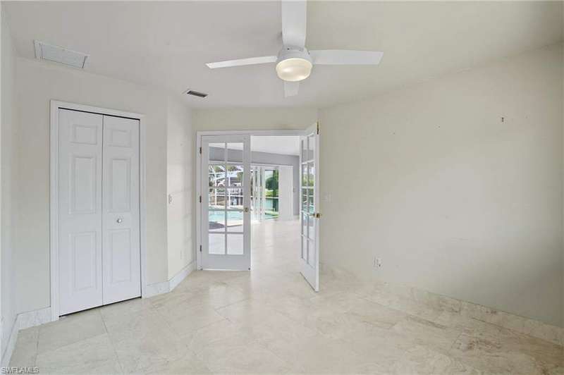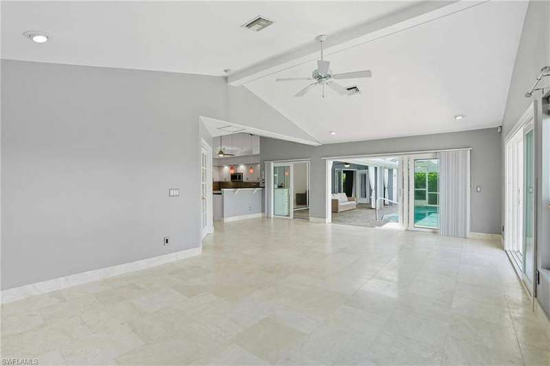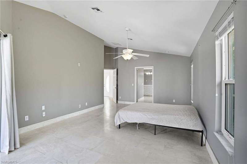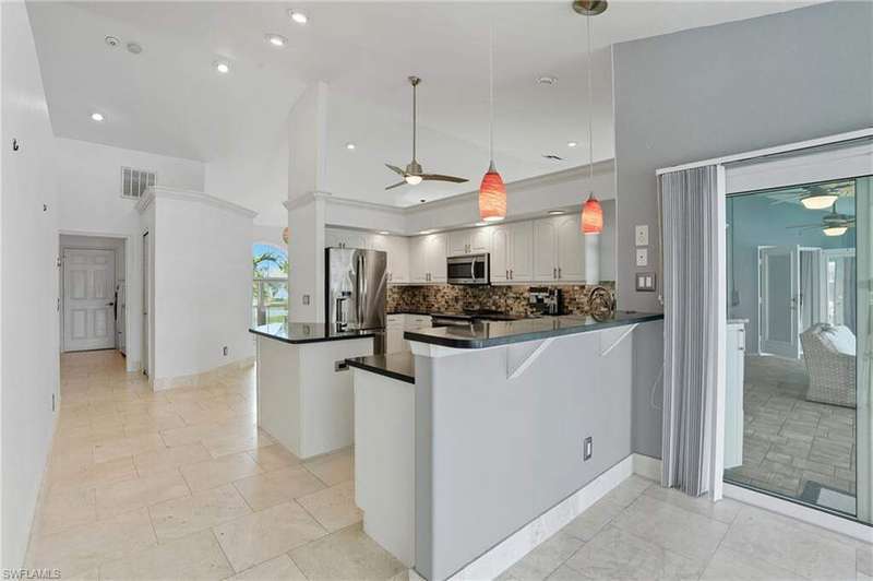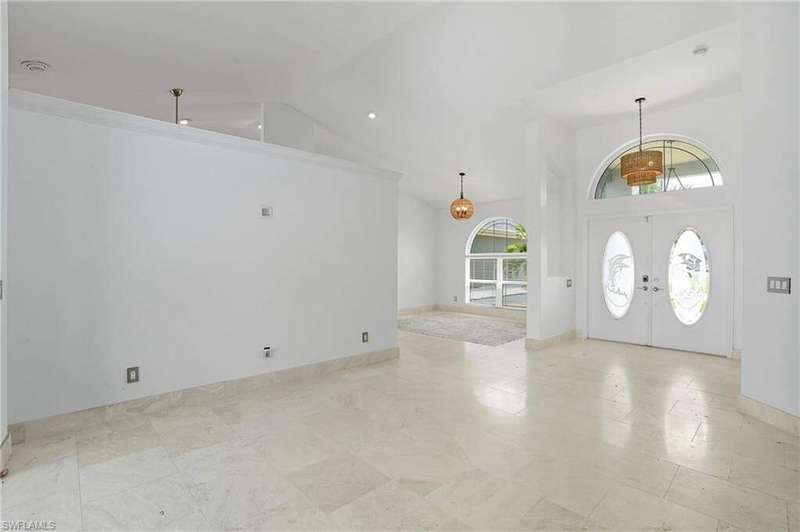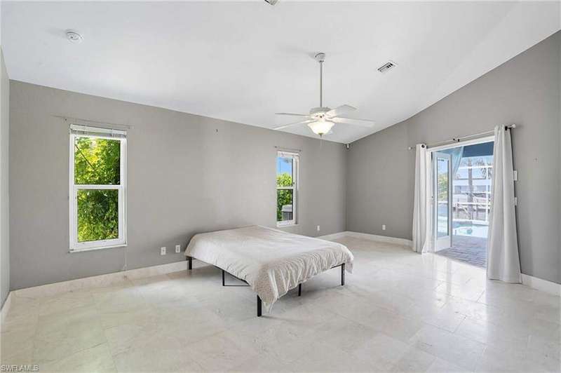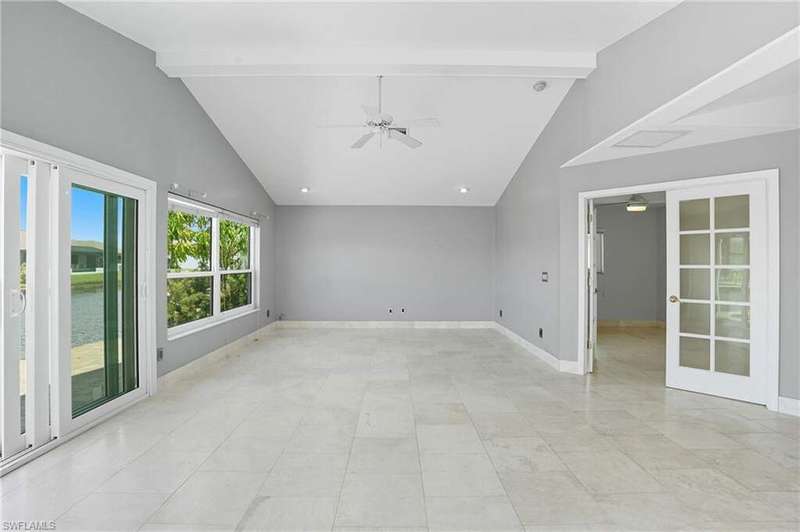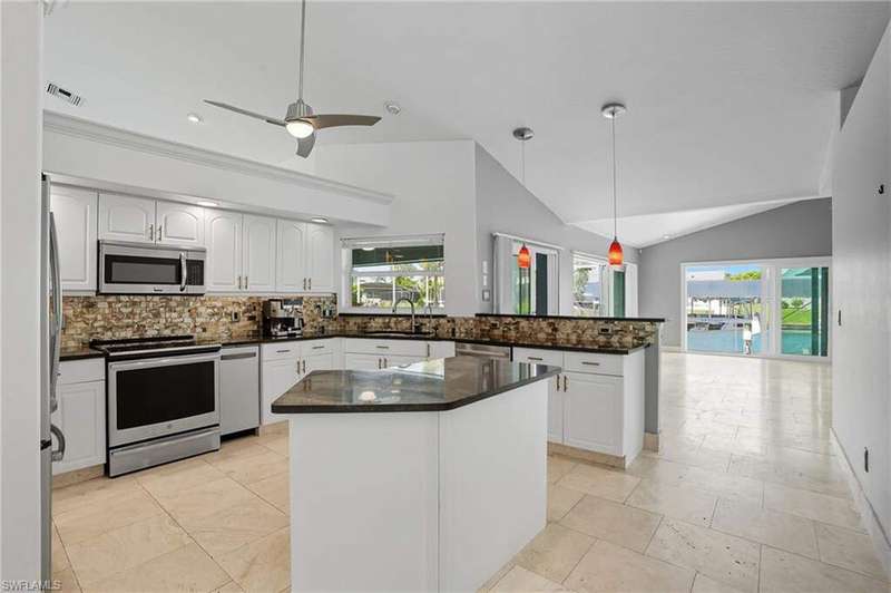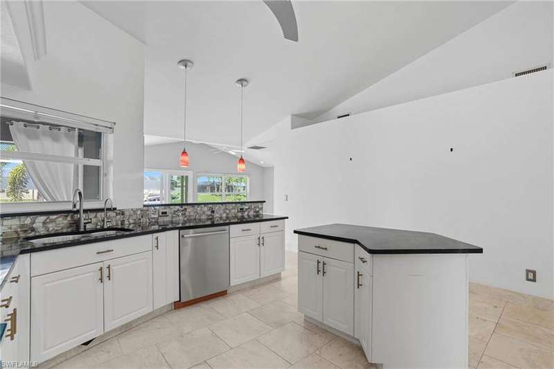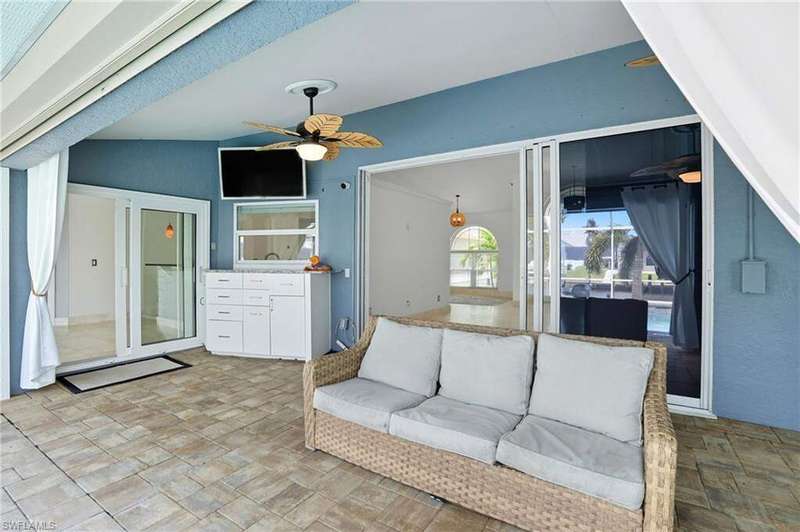 WATERFRONT LIVING AWAITS IN THIS STUNNING, NEVER FLOODED, SAILBOAT ACCESS CAPE CORAL POOL HOME. Set on a sailboat access canal with a quick 15 minute ride to the Caloosahatchee River, this 4 bedroom, 2.5 bath retreat blends comfort and elegance. Nearly every room offers water views, and the screened lanai, expanded captain's walk, and 10,000 lb covered lift make boating and outdoor entertaining effortless. Inside, travertine floors flow wall to wall, accented by granite counters, tile backsplash, and custom sliders that open wide to the outdoors. Major upgrades provide peace of mind: roof 2023, AC and ductwork 2022, hurricane windows and shutters, epoxy garage flooring, whole home water softener, Rainsoft filtration, hot water tank 2021, and pool pump 2020. Freshly painted exterior, paver driveway, extended patios, updated landscaping, and lanai screens complete the polished feel. Every detail has been enhanced for lasting quality and style, from retaining walls and sprinkler system to the boat lift canopy with electric and water access. Schedule your private showing today before this rare waterfront gem is gone.
