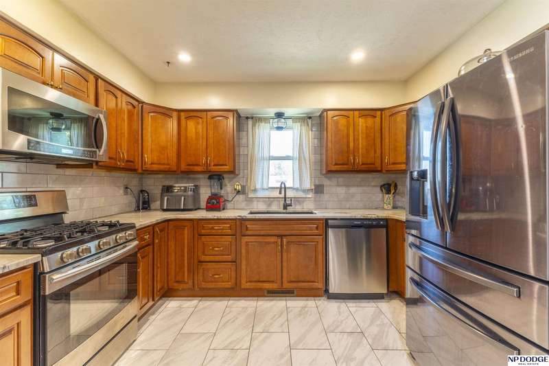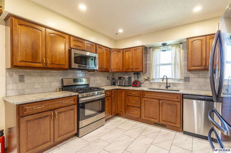 Open House Sunday 10/5 1-3pmJust minutes from Offutt AFB & major traffic routes, this home is also just two blocks from schools, parks, & shopping. Best of all, it's tucked away on a semi-private street. Numerous updates have already been completed for you! Many newer windows, fresh carpet, & flooring. The kitchen is a standout feature-boasting soft-close cabinets, tile flooring, granite countertops, a stylish backsplash, newer appliances, layout that provides generous space. The family room features attractive plank flooring, a fireplace, & a wet bar-perfect for relaxing or entertaining. There's a convenient main flr laundry combined with a half bath. The spacious primary suite offers a private bath & double closets. This home includes a rare double basement with a walk out to the patio, tons of storage/space, & a rec room. Step outside to enjoy the deck or patio/fenced yard featuring well kept landscaping, sprinkler system, vinyl siding for low maintenance care. HVAC updated in 2021.