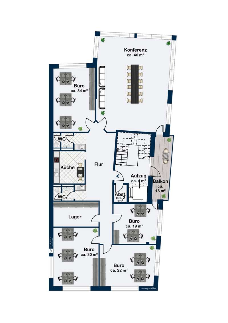 Welcome to this prestigious office building built in 2003. The modern office property impresses with its high-quality fittings and high functionality. The entire floor offers versatile possibilities for use as office or practice space. It is in an extremely central location in Wolfsburg, which ensures excellent accessibility and visibility. The office space on the 1st floor has a total area of approx. 244 m², which can be used efficiently. The room layout can be flexibly designed to optimally meet your individual requirements and needs. In addition to the office building, sufficient parking spaces can be rented directly in front of the building, providing easy access for employees, business partners and customers. This is particularly invaluable in this central location and greatly improves the accessibility of your premises. The VW plant, Wolfsburg railroad station, numerous restaurants, shopping facilities and service providers are located in the immediate vicinity, making it easy to run errands during working hours and making your offices easily accessible even without a car. The property is in a well-kept and modern condition that meets the requirements of contemporary and efficient workspaces. The well thought-out design combines functionality with an appealing aesthetic, creating an ideal basis for a productive working day. The elevator facilitates access to the office floor and successfully rounds off the overall impression.