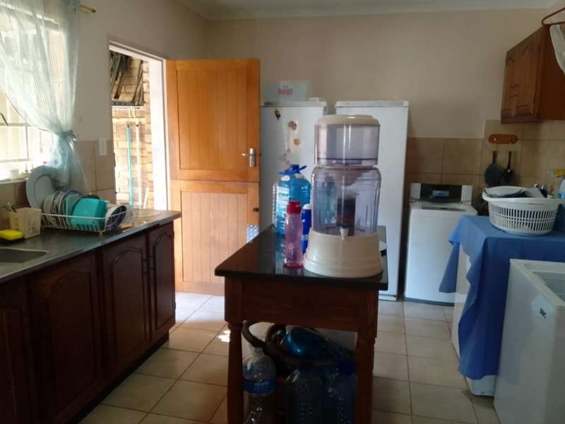 Welcome to your dream home! This exquisite 4-bedroom, 3-bathroom residence is designed for both comfort and luxury, perfectly suited for modern family living. From the moment you step inside, you’ll be captivated by the spacious layout that encompasses a bright and airy lounge, an inviting kitchen, and a convenient study space ideal for work or study-from-home. The heart of the home—a stylish kitchen—features high-end appliances and ample storage, while the adjoining scullery keeps the cooking area tidy and organized. Each of the four bedrooms offers a serene retreat, with the master suite boasting a private bathroom for your convenience. Step outside to discover three charming patios, perfect for entertaining guests or enjoying tranquil evenings under the stars. The outdoor space is complemented by manicured gardens and ample room for children or pets to play. For those with multiple vehicles, this property does not disappoint. It includes two garages and two carports, ensuring you have plenty of space for cars, bikes, or outdoor equipment. This home is also equipped with a state-of-the-art solar system and a 5000lt water tank with a pressure pump, providing both energy efficiency and sustainability. This property is not just a house; it's a haven designed for families looking for style, comfort, and practicality. Don’t miss the opportunity to make this extraordinary home yours! Schedule a viewing today and experience the lifestyle that awaits you.
