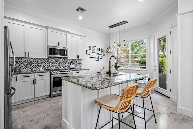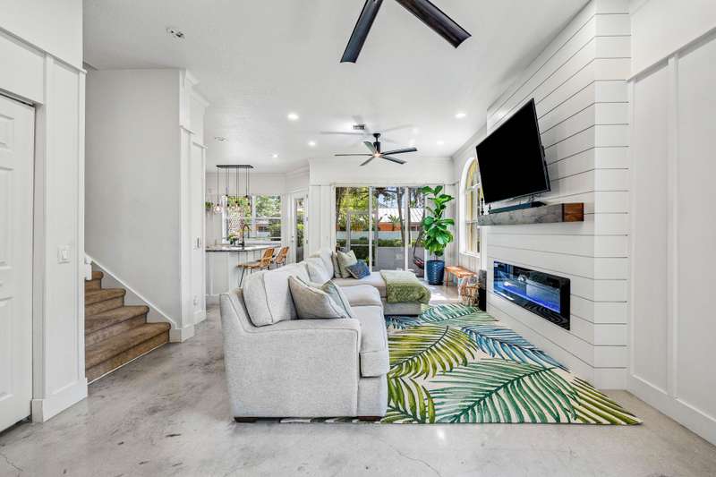 Welcome to Barefoot Cove, a tropical paradise gated waterfront community where every day feels like a vacation. This beautifully updated 3-bedroom + den, 3-bathroom end unit townhome offers the perfect blend of privacy, comfort, and coastal charm. Located directly across from the Intracoastal-front pool, this residence is one of the most desirable spots in the neighborhood.Step inside to discover thoughtfully upgraded interiors, including all remodeled bathrooms, custom Crate & Barrel light fixtures, and dimmer switches throughout for a perfectly curated ambiance. The screened sunroom and expansive patio provide ample outdoor living space to relax, entertain, or simply enjoy the tropical surroundings.Additional highlights include a rare 2-car garage, flexible den/office space, and generous natural light thanks to the end unit positioning. The pet-friendly and rental-friendly community is gated for peace of mind and convenience, and just moments from beaches, shopping, and dining. Whether youre looking for a full-time residence or a lock-and-leave coastal retreat, this home captures the essence of South Florida living at its finest.