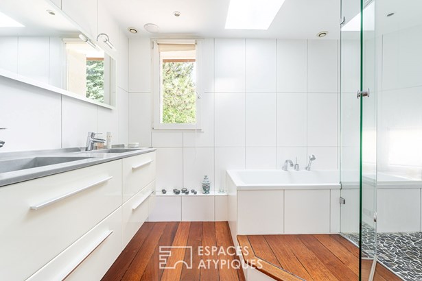 It opens directly onto a beautiful south-facing terrace without any vis-a-vis and in complete calm. On the night side, the property consists of five bedrooms spread over several levels including a magnificent master suite with private bathroom and one with a shower room.