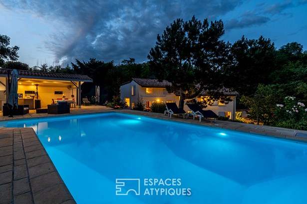 A bathroom shares the last 3 bedrooms. A laundry room, a cellar and a competent sauna make this a beautiful ensemble. On the garden side, absolutely unique, at the gates of Lyon, a large swimming pool with pool house equipped with an outdoor kitchen and a petanque court enhances the whole.