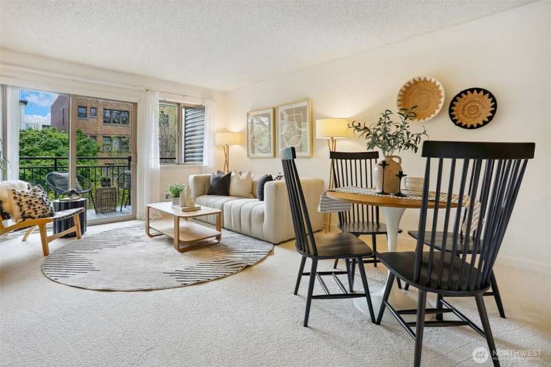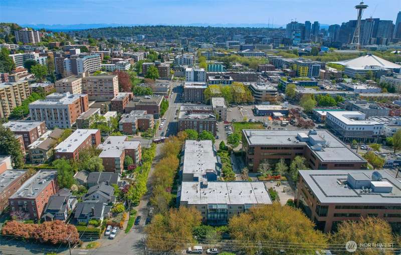 Impeccably maintained residence located right in the heart of lower Queen Anne that is so close to everything this vibrant city has to offer! Bright western exposure from its sunny balcony that takes advantage of the warm sunrays during those PNW spectacular summers (and during the other times of year as well!). Updated with fresh paint & new carpet plus tub resurfacing, this immaculate condo is move-in ready and lives much larger due to its simplistic & open layout. Well maintained building situated in a beautiful garden setting. Pets welcome! Amenities include formal lobby w/ secured entry, exercise room, social room, gorgeous expansive community courtyard deck w/ BBQ grills, extra storage & bike room and secured garage entry.