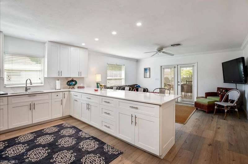 THIS NICELY RENOVATED HOME IS BEAUTIFULLY DECORATED AND AVAILABLE IN JANUARY, APRIL & MAY, 2026. The home has three bedrooms, two baths, a laundry room and a one-car garage and is located in the highly desirable 500 block in Naples Park. The large screened-in lanai with a grill overlooks a nicely landscaped backyard and is a great place for family and friends to gather for a barbecue. Bicycles, beach chairs, coolers, tennis racquets and games are available for tenants to use during their stay. This property is just minutes to fine restaurants and bars at Mercato, the Pavilion Shopping Center, Artis Naples, movie theaters, the Ritz Carlton Hotel and all the other amenities that Naples has to offer. It is a five-minute bike ride from the house to Delnor Wiggins State Park and Vanderbilt Beaches where a beautiful sunset awaits.