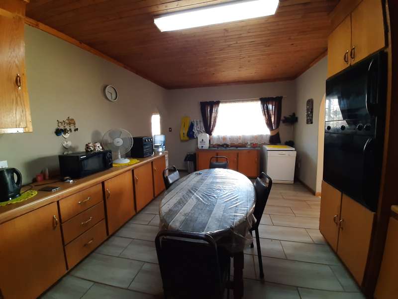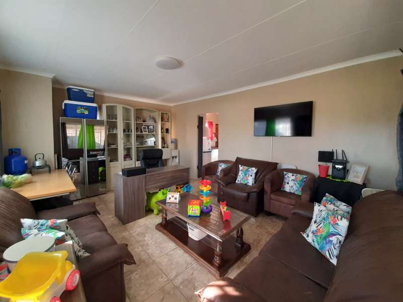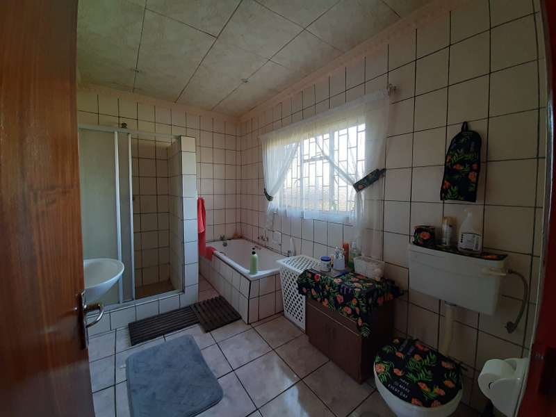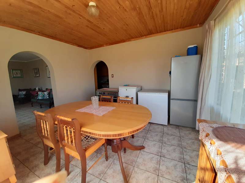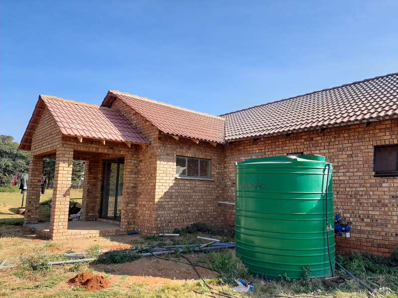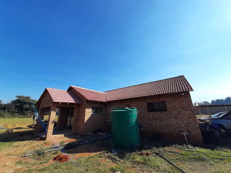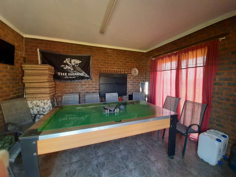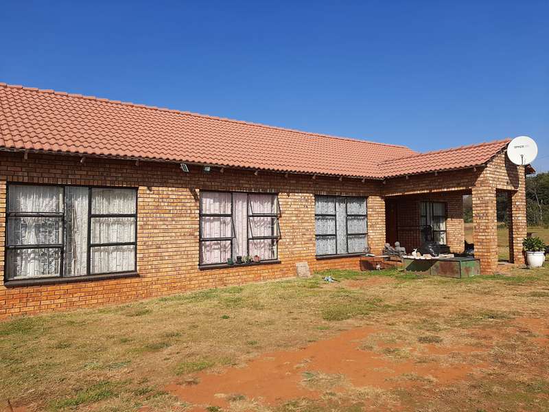 Two properties for the price of one! This 2.2 ha has 2 big houses, one with 4 bedrooms plus a 2-bedroom flat, and the other has 3 bedrooms. The potential is endless. The property is fenced with electric fencing on three sides. The 4-bedroom main house have two living areas, a kitchen, and two bathrooms, one of which is on-suite, a guest toilet, a dining room, and laundry. The main bedroom has an air conditioner. The flat is attached to the main house and consists of 2 bedrooms, a kitchen, and a bathroom. There is an entertainment room with a built-in braai. There is one lock-up garage and one carport. The 3-bedroom house has a big living room and a kitchen that are in the process of being built and will be completed before the property sells. There is one bathroom that has a place for a washing machine. Each house has a 2500-liter tank with a pressure pump. Property makes use of municipal water, there is a borehole, but it needs to be cleaned and fitted. With all these buildings, there is still a piece of land that can be used for small-scale farming or grazing for animals.