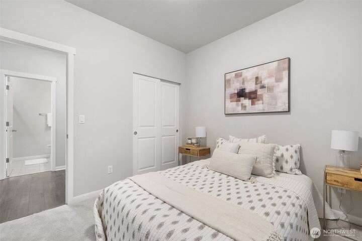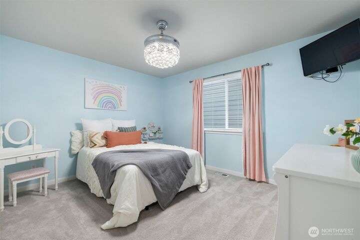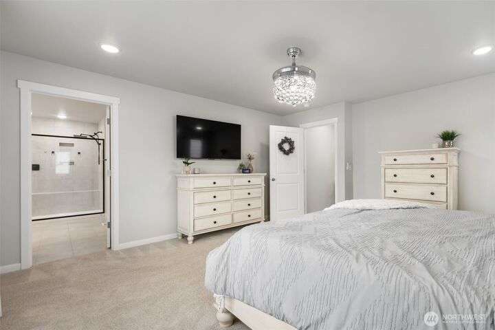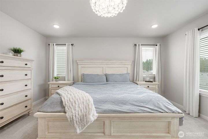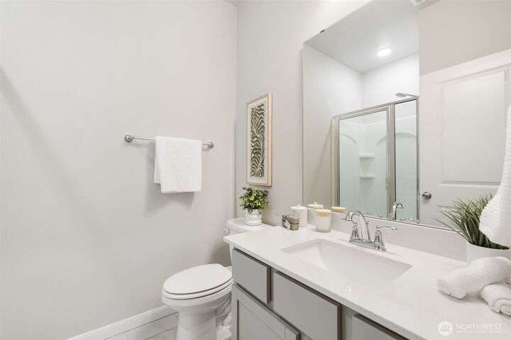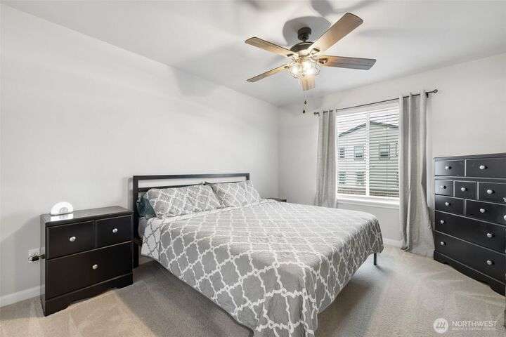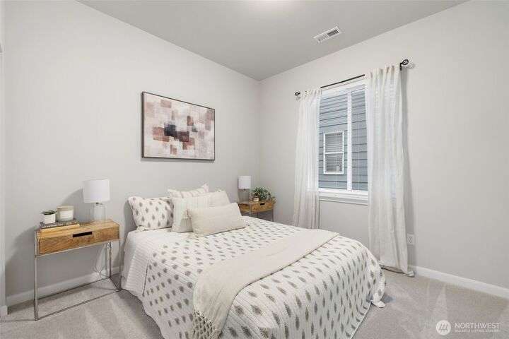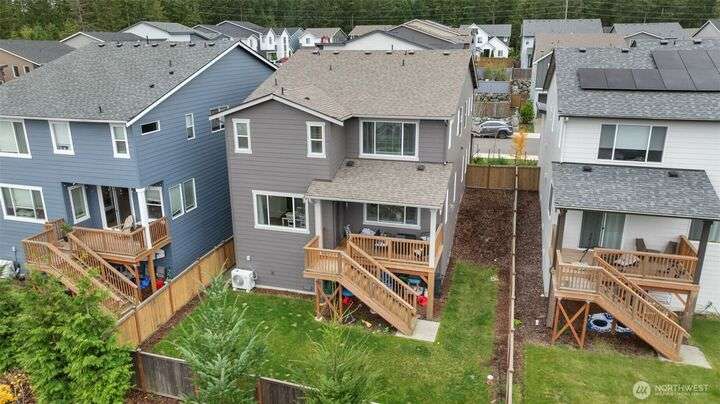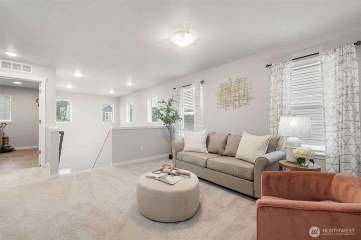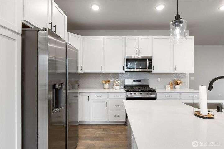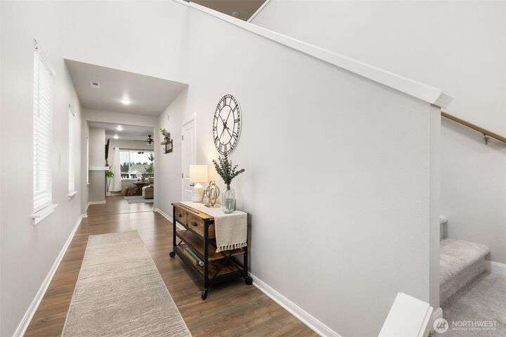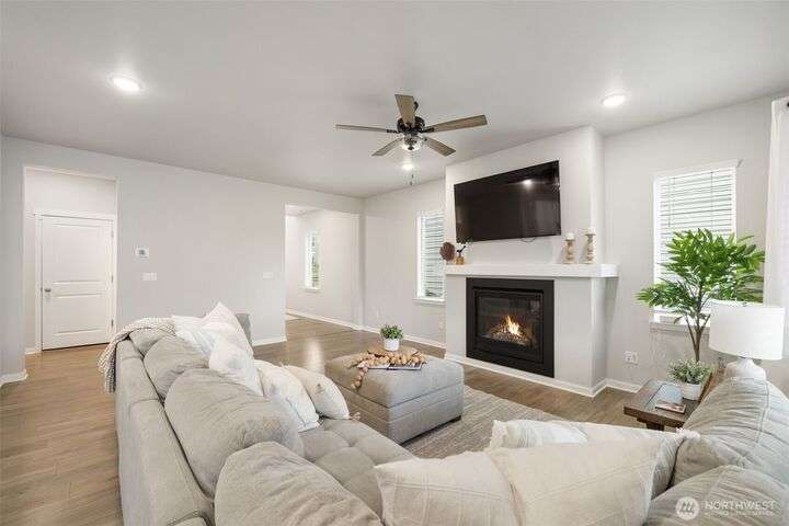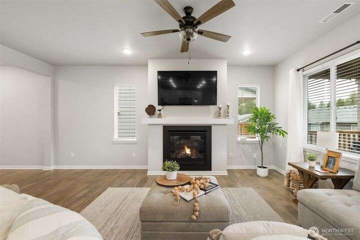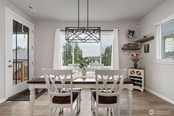 Why wait for new construction when you can have better than new w/ all upgrades done? This 4 bedrm 3 bath home in McCormick Village offers modern style, comfort & function. Enjoy an open layout w/ upgraded LVP floors, designer kitchen w/ gas range, subway tile backsplash, quartz counters & eat-in space that flows to the covered deck,a rare feature for year-round entertaining. Main floor bedrm & ¾ bath are ideal for guests or multi-gen living. Upstairs offers a loft, spacious guest rms & a luxe primary suite w/ oversized walk-in shower and closet & laundry also upstairs. Premium lot w/ no rear neighbors, heat pump, & walking distance to future Village retail hub w/ dining, gym, eateries plus all of McCormick Woods golf & Clubhouse amenities!