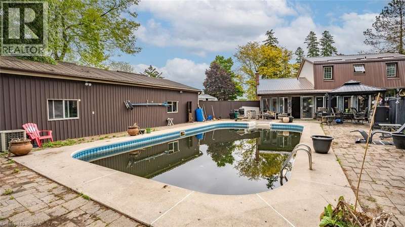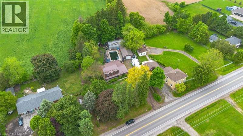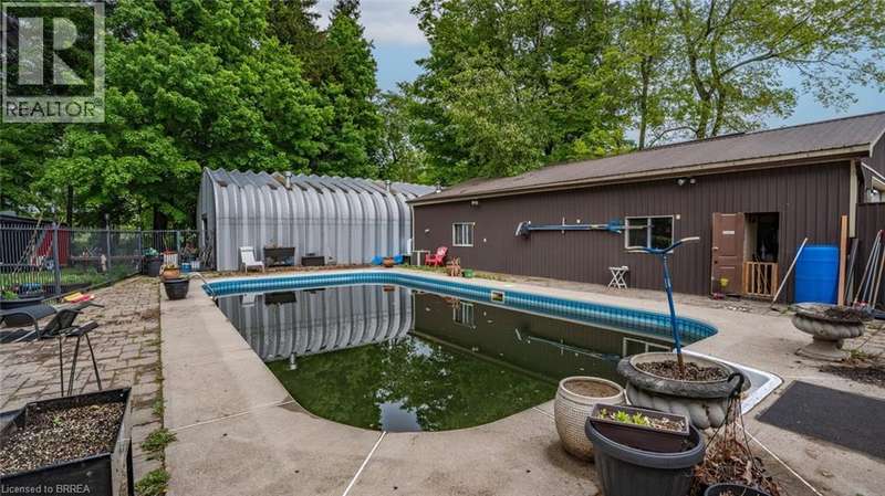 Welcome to 279 Cockshutt Road in Brantford — a charming and spacious 2-storey home nestled on a beautifully landscaped 0.92-acre lot in a tranquil rural setting. This property offers approximately 3,507 sq ft of living space, including 3 bedrooms and 2 full bathrooms, making it perfect for families or multi-generational living. The main floor features blonde hardwood and tile flooring, a bright and inviting layout with a formal living room, a cozy family room with wood burning fireplace, a separate dining area, and a well-appointed kitchen filled with natural light and ample cabinetry. Upstairs, you'll find 3 bedrooms and 2 full bathrooms, while the partially finished basement offers flexible space for a rec room, office, or additional guest quarters with a walk-up back entrance. Outside, enjoy the peaceful surroundings, mature trees, and a large yard, covered porch with bar and hot tub, and oversized inground pool ideal for entertaining or relaxing. The home also includes a heated detached 6- car garage, additional large insulated/ heated quonset, and parking for 10+ vehicles. Recent updates include roof shingles (2016) and a natural gas forced-air heating and central A/C system. With a private well and septic system, this home offers self-sufficient living just minutes from Brantford’s conveniences, schools, and highways. Zoned residential and located near the corner of Cockshutt Road and Campbell Farm Road, this property is a rare opportunity to enjoy country living with modern comforts with vacant possession available on a 60+day close. (id:7434)